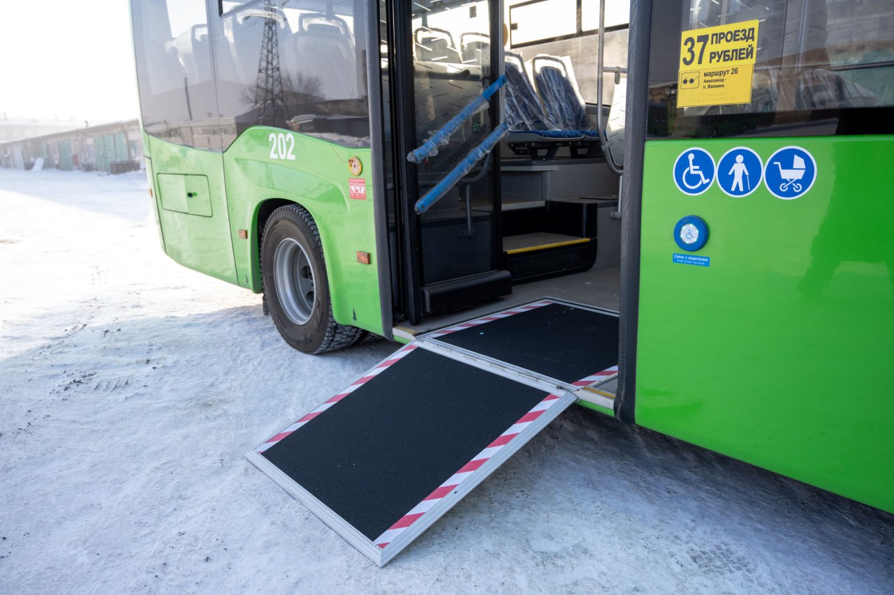 Низкопольный автобус марки «КАМАЗ» приобретен за счет бюджета Иркутска по программе «Доступная среда». Он оборудован пандусами для заезда инвалидных и детских колясок, а в салонах предусмотрены специальные крепления для фиксации средств передвижения.