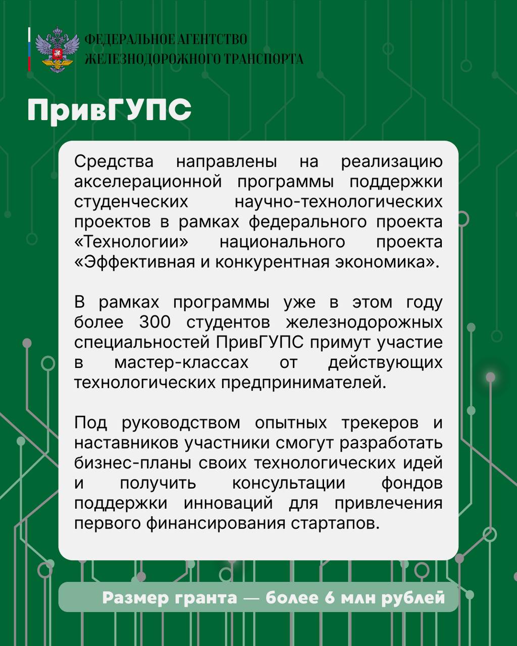 Студенческий бизнес-инкубатор ПривГУПС получит более 6 млн рублей. В проекте примут участие свыше 300 студентов, которые разработают и доработают свои технологические идеи при поддержке экспертов и индустриальных партнёров.