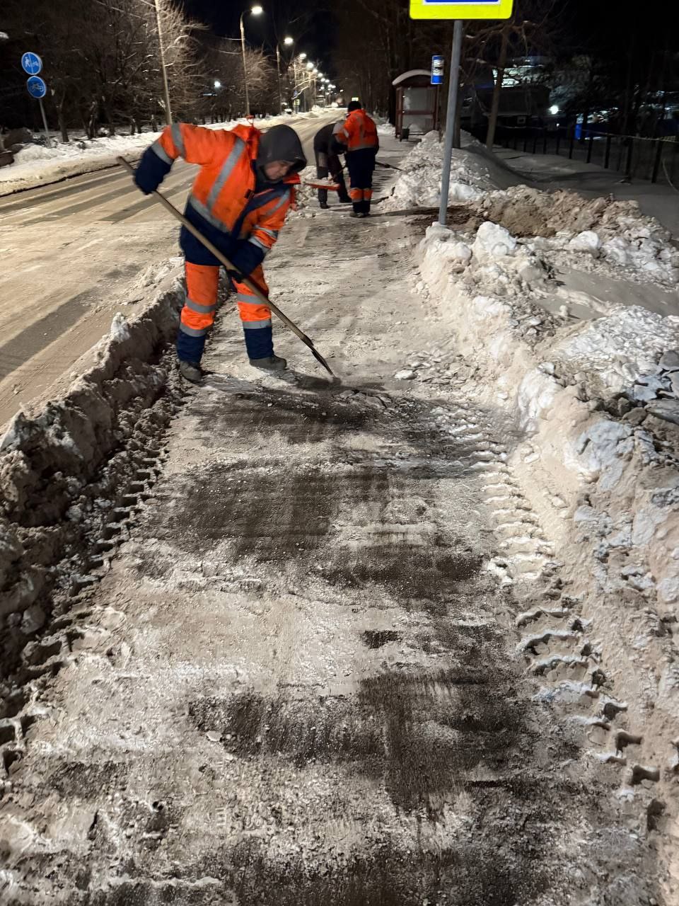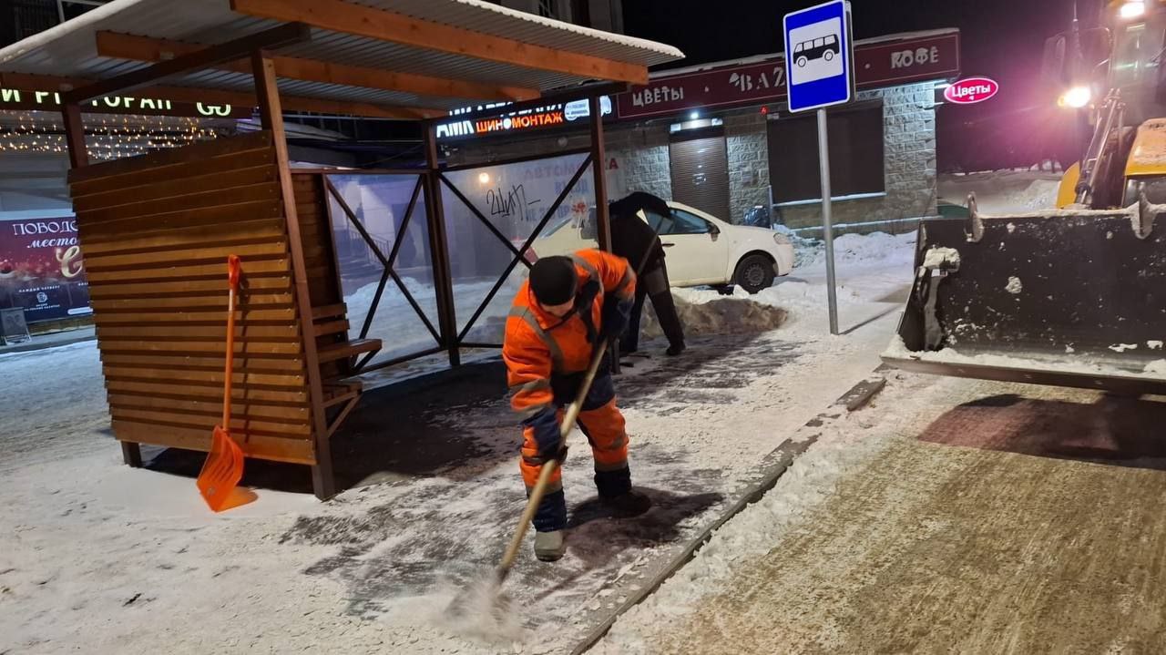 В течение дня ручная и механизированная уборка улиц будет продолжена. При необходимости выполняют противогололедную обработку дорог и тротуаров. Также приступили к очистке крыш остановочных павильонов.