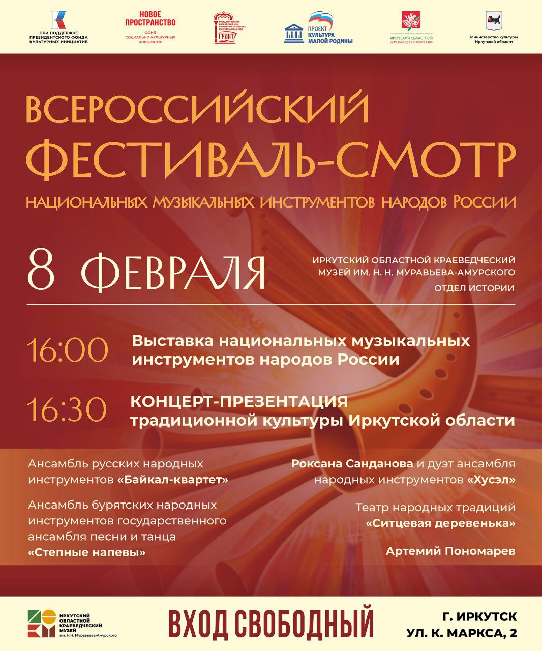 С 8 по 10 февраля в Иркутске впервые пройдет Всероссийский фестиваль-смотр национальных музыкальных инструментов.