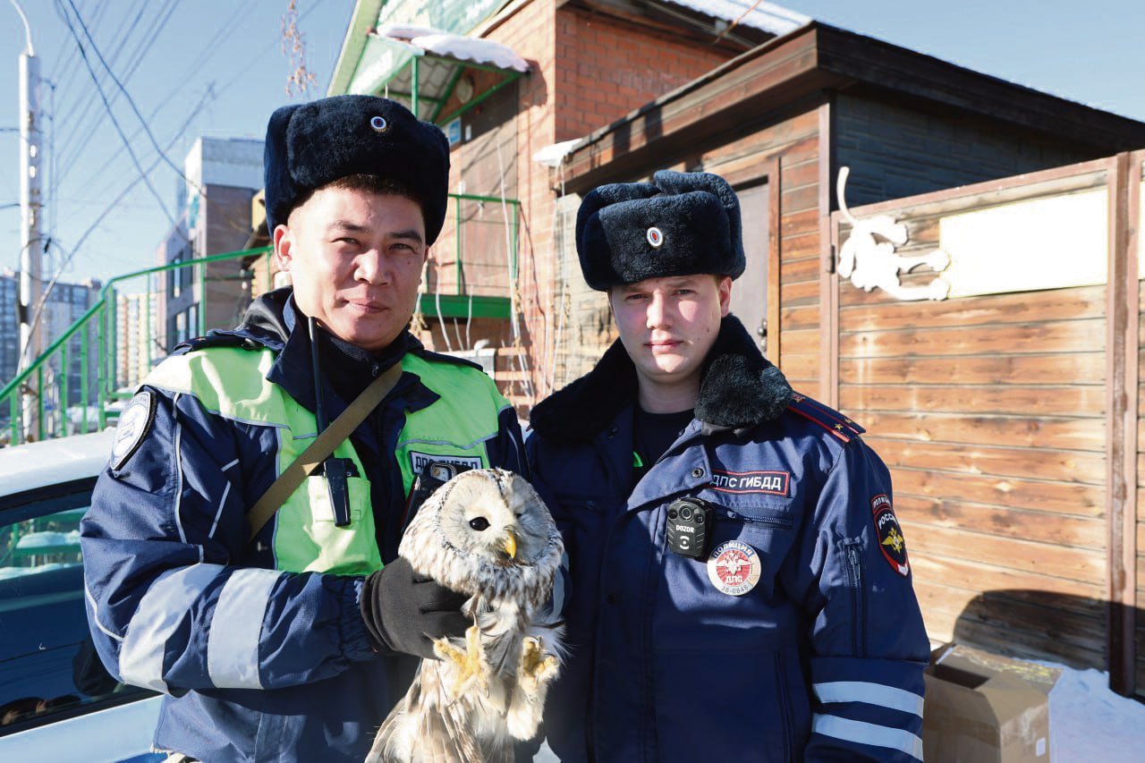 Ночной хищник на автомобильной дороге, да еще днем — явный сигнал беды! Крупную птицу офицеры полиции Роман Файзулин и Григорий Федоров заметили во время патрулирования трассы Иркутск — Большое Голоустное. В начале декабря утром они ехали в сторону Байкала и за деревней Худяково на сером, почищенном от снега асфальте увидели сову. Но что она делает здесь при свете дня? Сидит, не улетает, один глаз прищурен, будто подбит.
