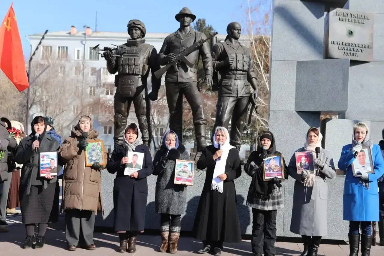 Матери погибших бойцов – участницы инициативной группы «Солдатские мамы Иркутска» Любовь Балаханова, Елена Кровякова, Аксана Гарбузова, Наталия Кожокарь, Баирма Жамсаранова, Мария Ветрова, Татьяна Денисова и Татьяна Белякова на митинге исполнили песню «Слава погибшим сыновьям!» (автор – Сергей Цыкин).