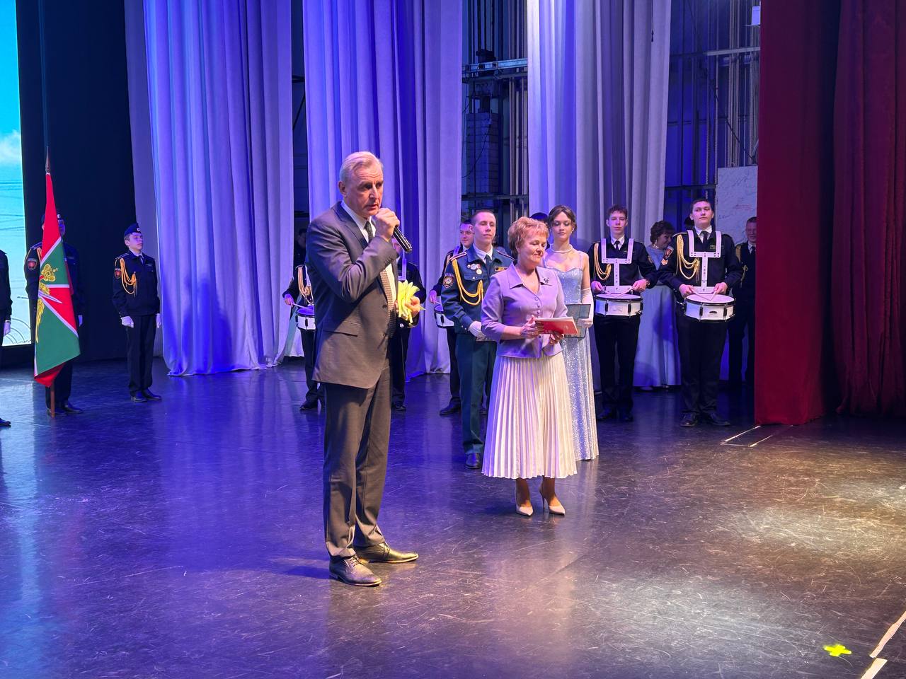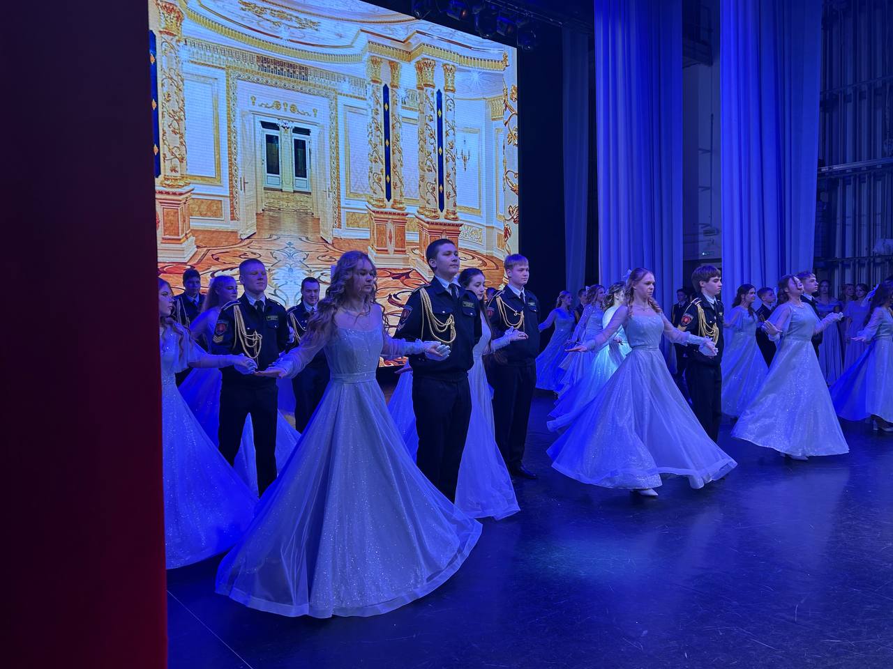 В театральном зале ДК «Нефтехимик» выступили перед родителями 250 учеников 8-11 кадетских классов школы № 39 имени Героя РФ, генерала армии Е. Н. Зиничева. В этом году юбилейный, десятый, кадетский бал приурочен к 75-летию Ангарска.