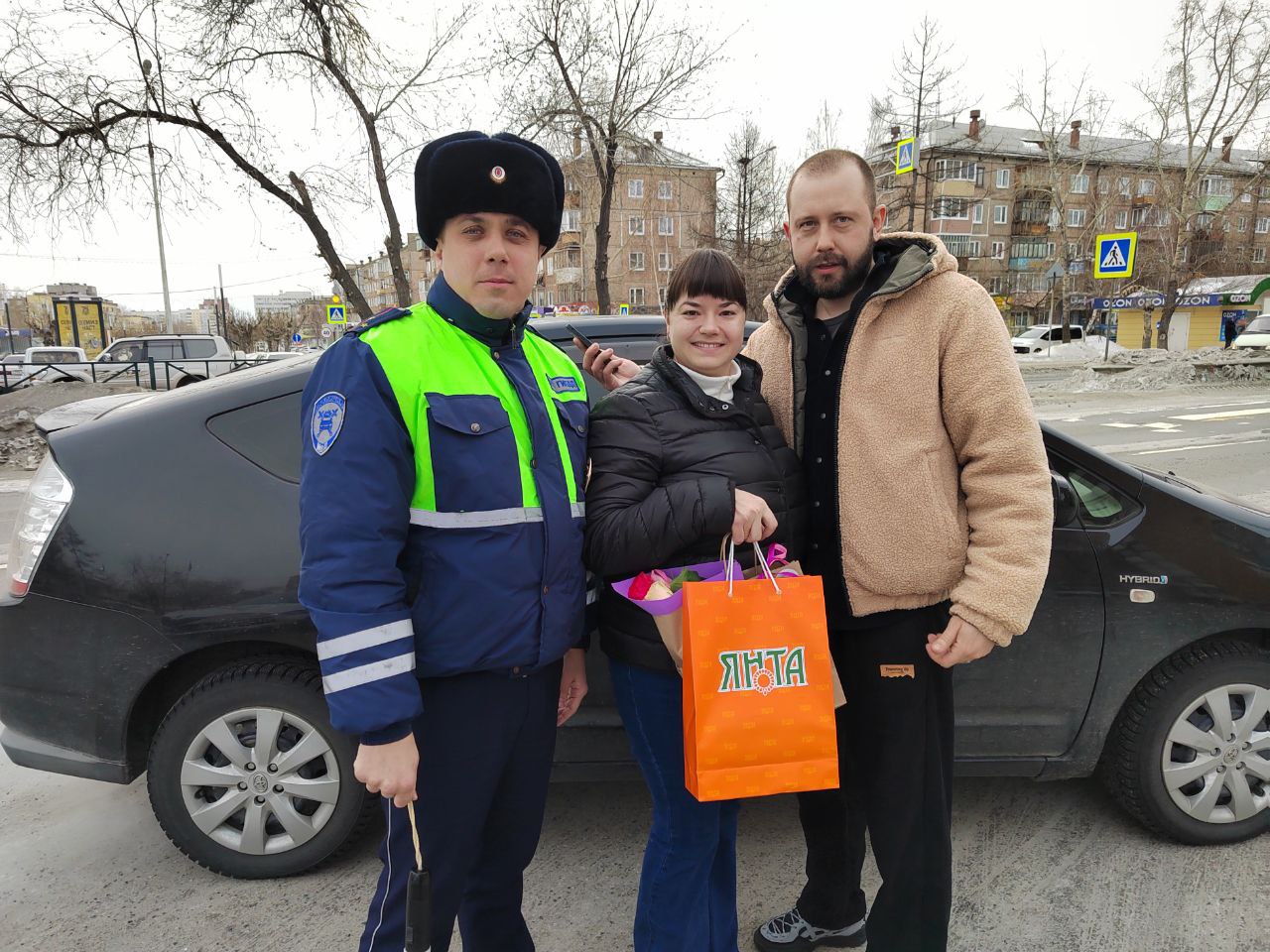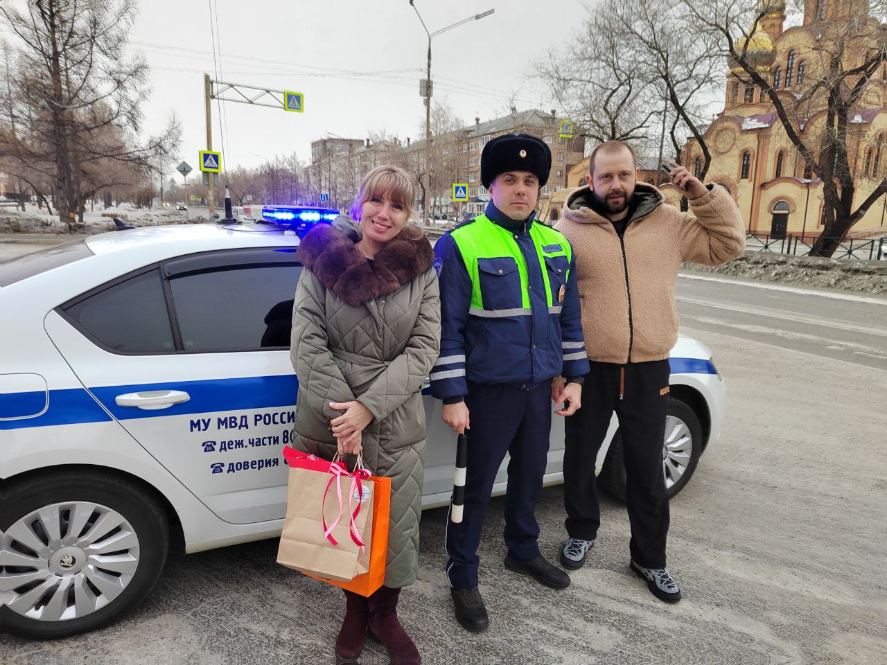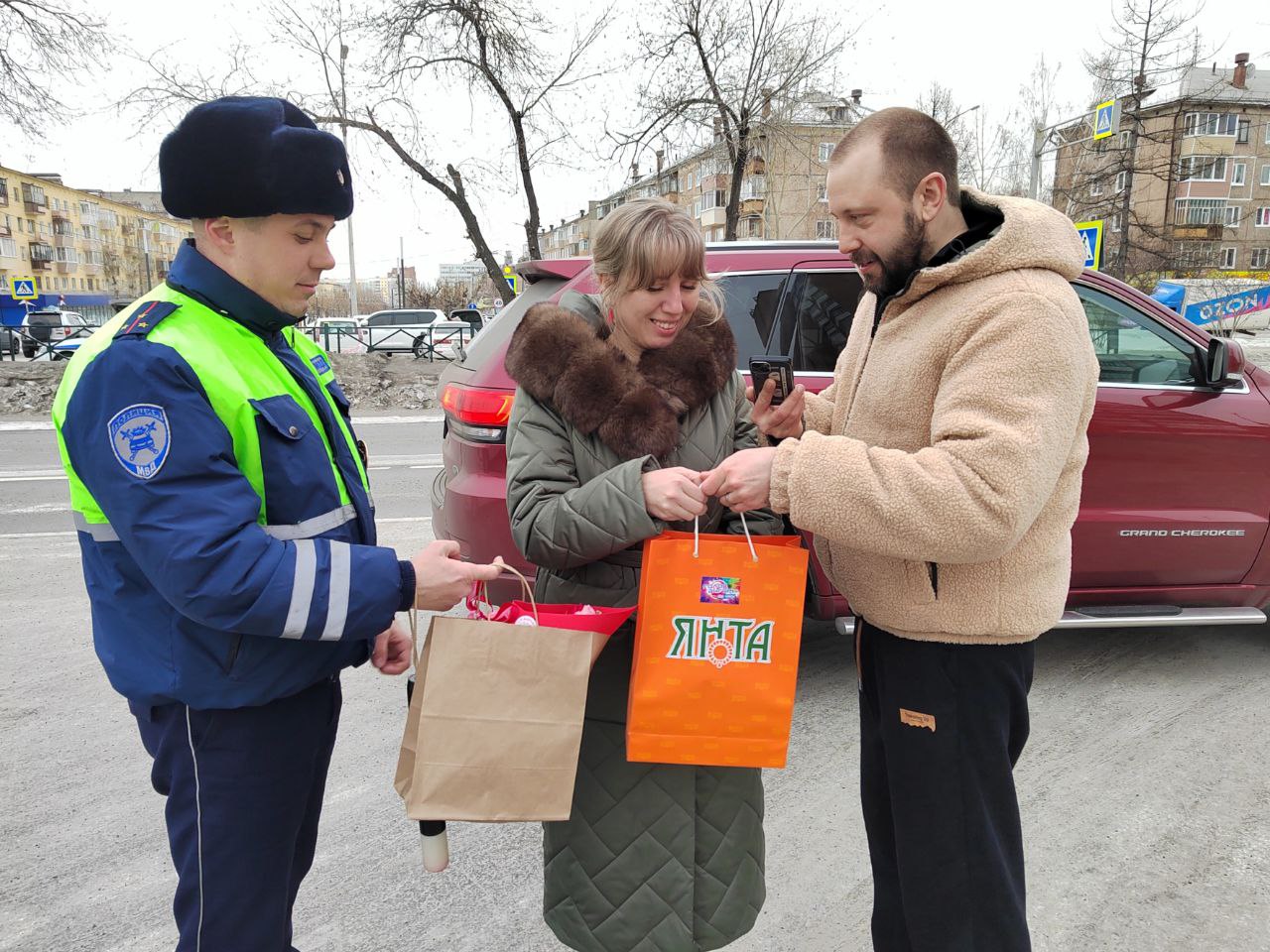 Старший лейтенант полиции Иван Захаров и диджей радиостанции «Голос Ангары» Андрей Дубровин останавливали автомобили, чтобы поздравить женщин-водителей с 8 марта! Они вручали автомобилисткам цветы и подарки и напоминали о соблюдении правил дорожного движения. Каждая автоледи уезжала с улыбкой, хорошим настроением, а также напутствием быть внимательнее на дороге, беречь себя и соблюдать правила дорожного движения.