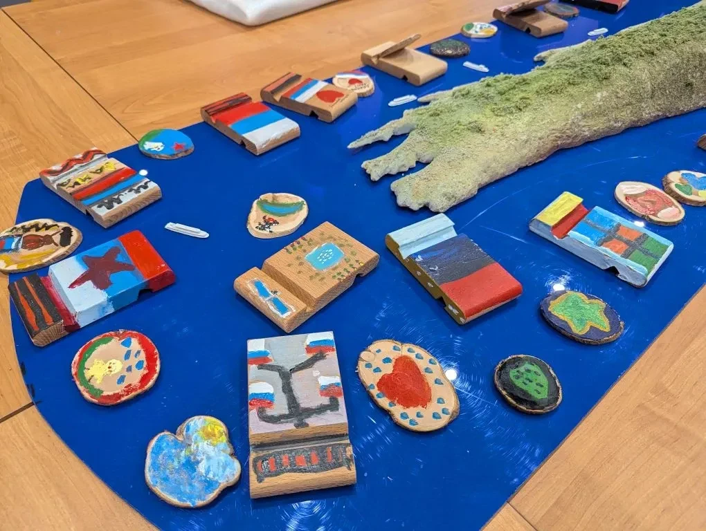 Акция «Талисман» состоялась в Представительстве Иркутской области в Москве. Более 20 учеников младших классов раскрасили для бойцов специальной военной операции деревянные обереги в знак поддержки.