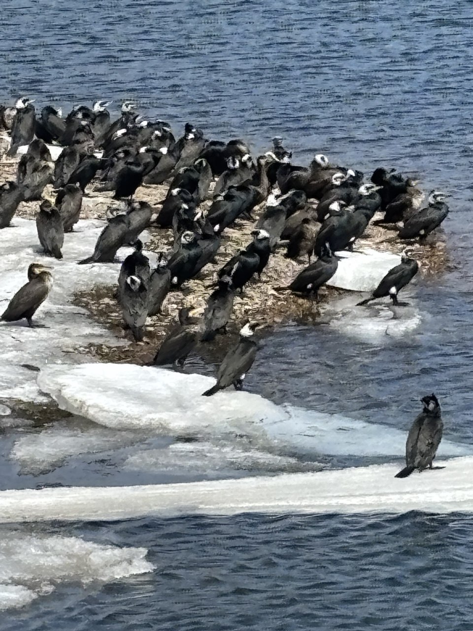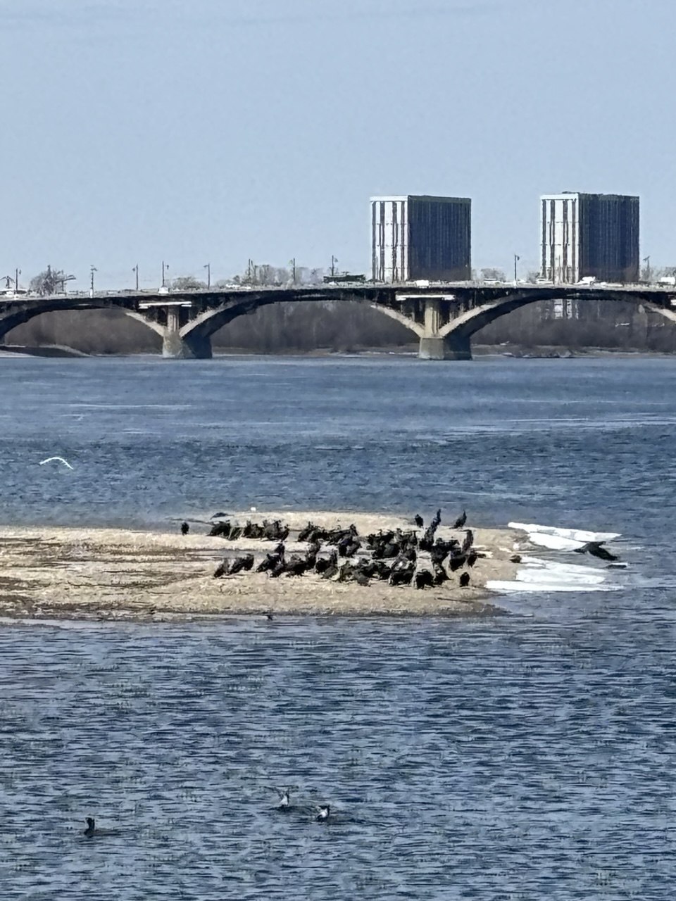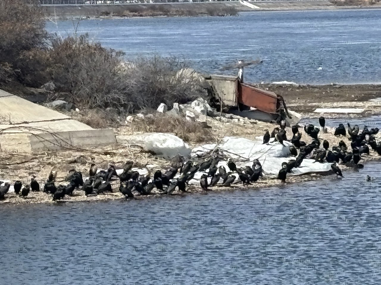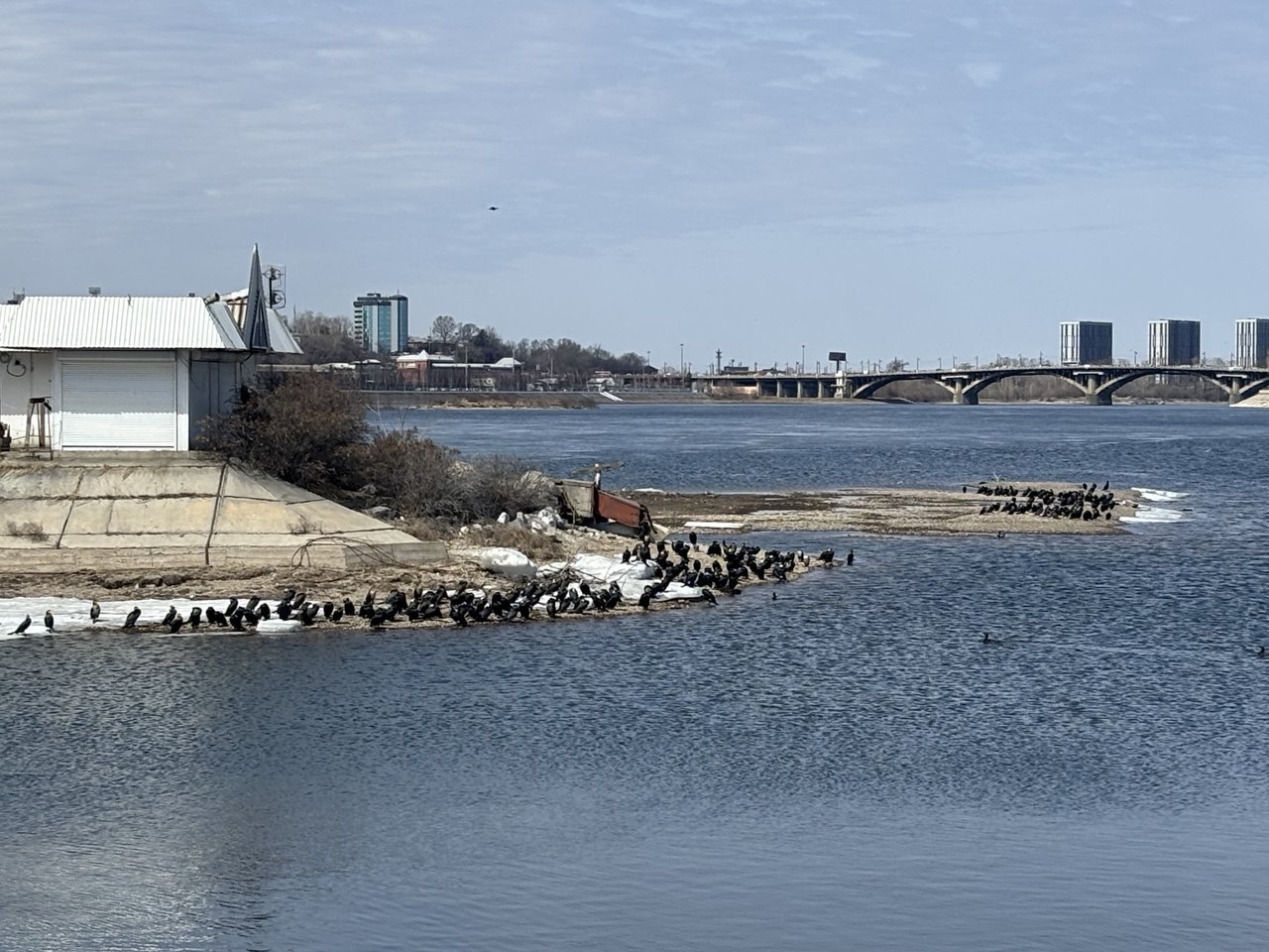 Бакланы в городе: фотографии, на которых множество этих птиц отдыхает близ Ангары, мы сделали сегодня, проходя по набережной. Похоже на настоящее нашествие (или налет ?).