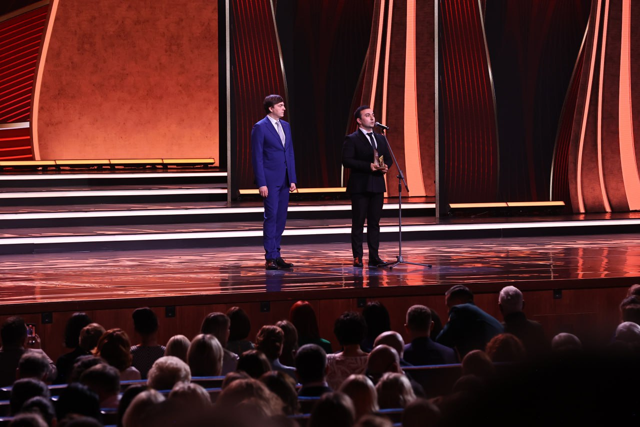 Министр просвещения Сергей Кравцов вручил награду победителю конкурса «Директор года России» – руководителю образовательного комплекса «Точка будущего» города Иркутска Максиму Астраханцеву.