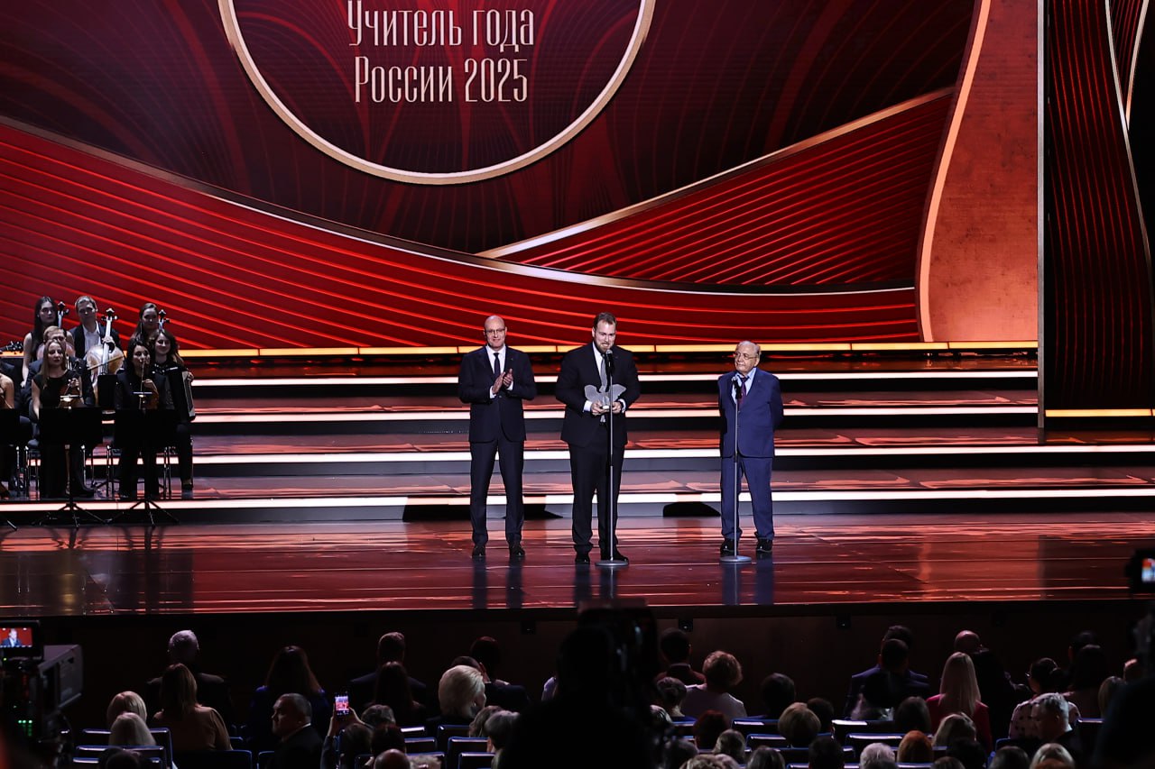 В Государственном Кремлевском дворце состоялась торжественная церемония награждения победителей всероссийских профессиональных конкурсов Минпросвещения РФ 2025 года и праздничный концерт, посвященный Дню учителя.