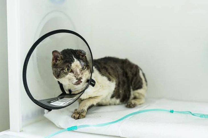 У пушистого пострадавшего была высокая температура, множество ран. Ветеринары стабилизировали состояние, три раза в день обрабатывают раны, по два-три часа в кислородной камере, ставят капельницы.