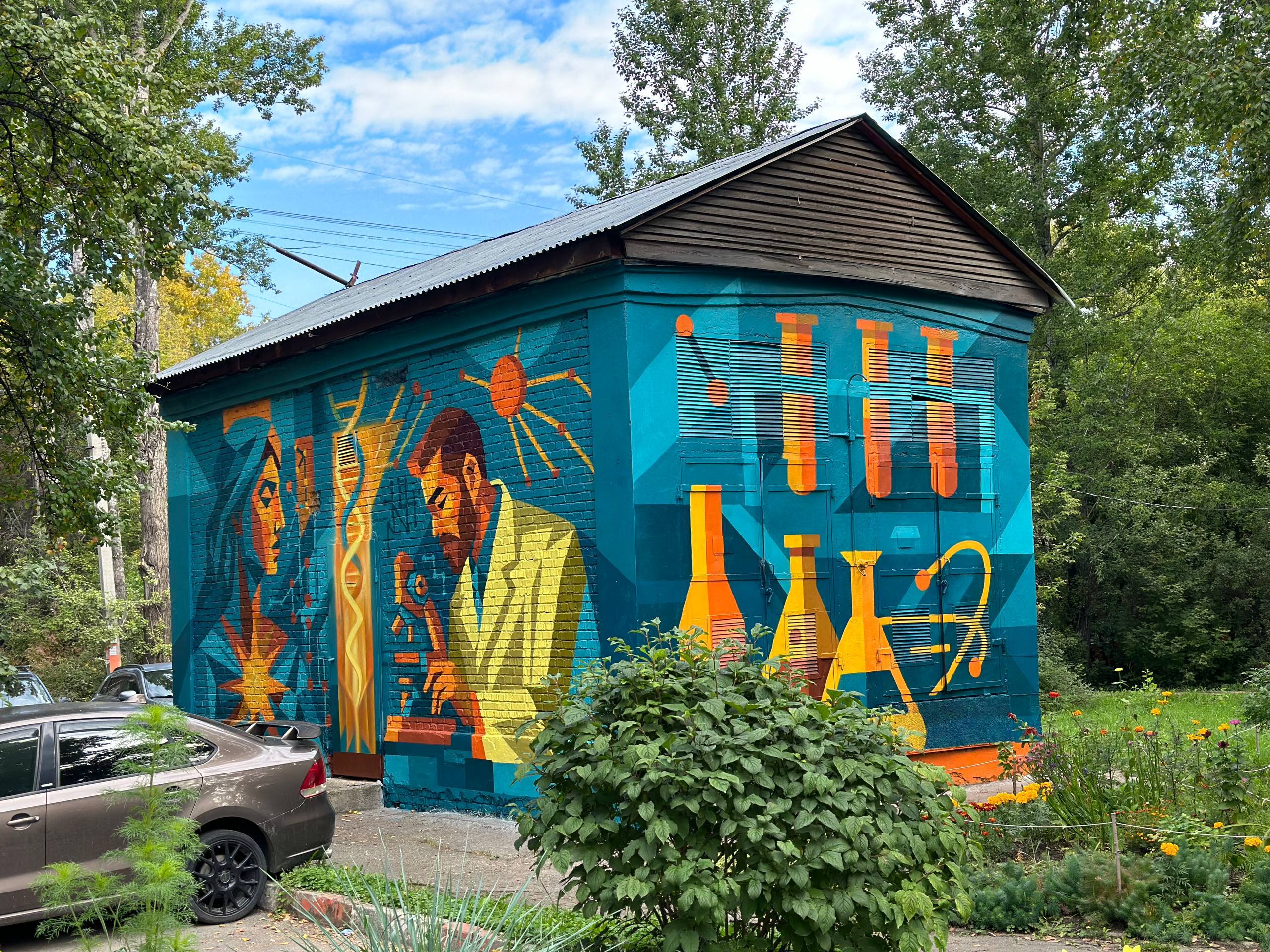 В этом сентябре в Академгородке появилось ещё два объекта, расписанных в рамках фестиваля «Голос улиц» 2025 года.