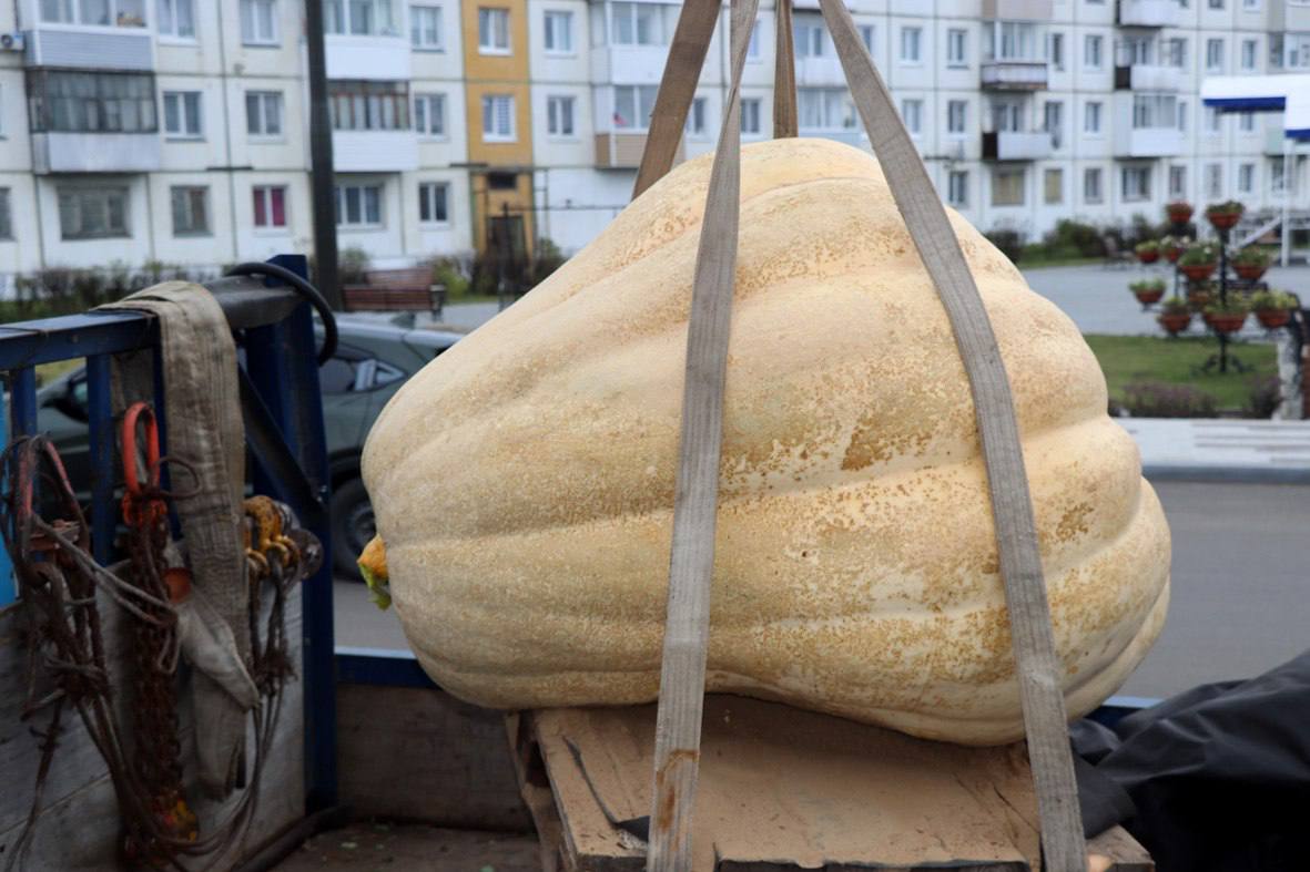 Самой большой стала тыква весом 397 килограммов. Для ее транспортировки потребовался грузовой автомобиль с краном.