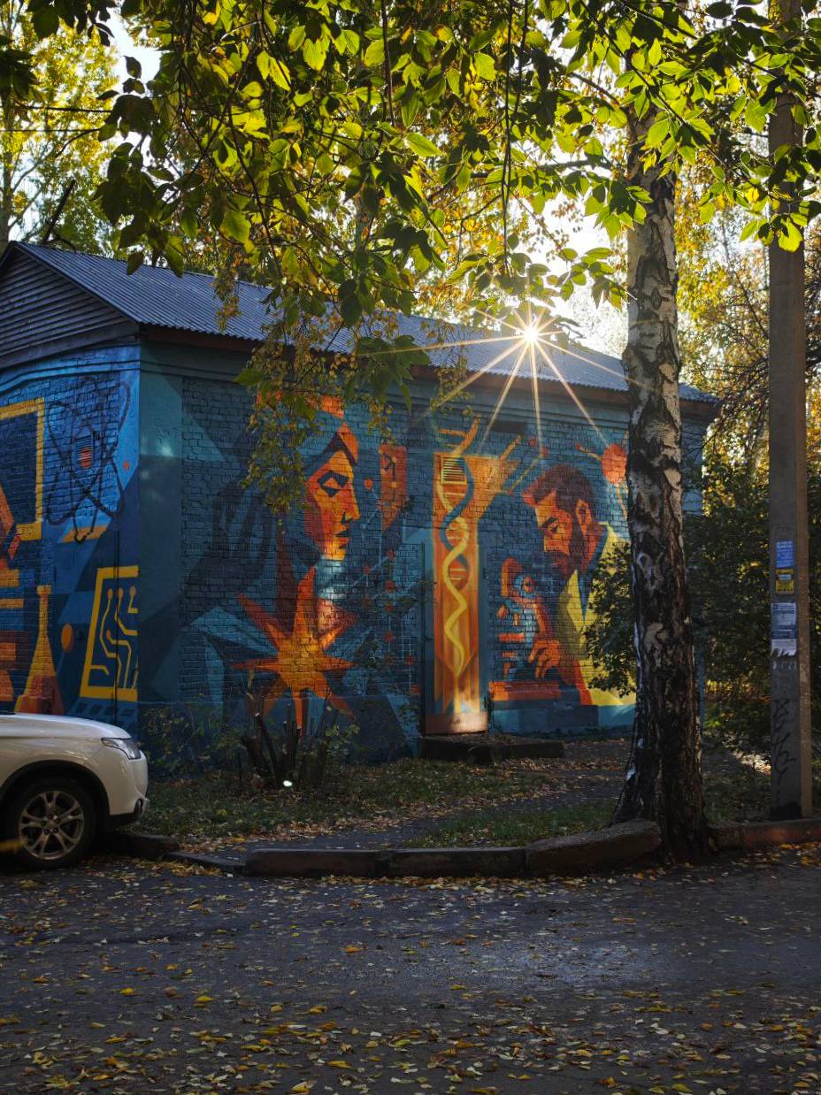 Мурал в Академгородке, созданный по проекту «Голос улиц»