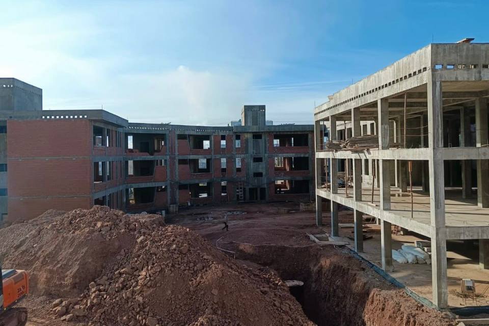 На данный момент осуществлен вынос сетей канализации и водоснабжения, разработан котлован под все блоки здания, завершены работы по гидроизоляции фундамента и утеплению цокольного этажа, возведен основной каркас здания. Ведутся работы по кирпичной кладке, бетонированию подпорной стенки и устройству наружных инженерных сетей.