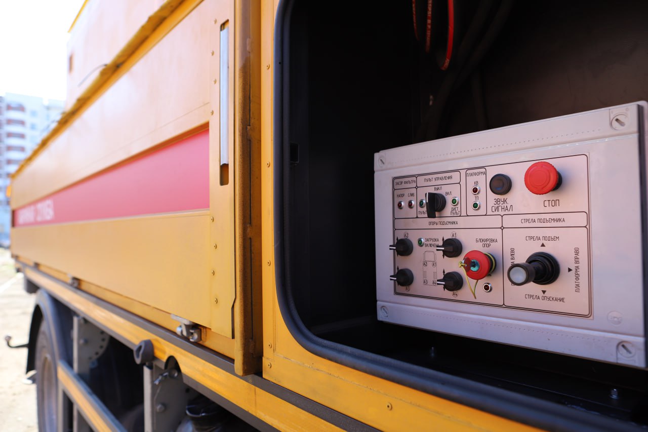 – Машина существенно отличается от тех, что мы использовали ранее. Во-первых, она новая, а у прежних уже подходит срок выработки своего ресурса. Во-вторых, вместо двух аутригеров их здесь четыре, что делает ее более устойчивой. В щитке расположен уровень, благодаря которому можно выставить автомобиль в правильное горизонтальное положение и верно распределить нагрузку. Кроме того, подъемник может двигаться не только в вертикальном направлении, но и в горизонтальном: площадка перемещается на полтора метра вправо и влево, – рассказал директор МУП «Иркутскгортранс» Сергей Майок.