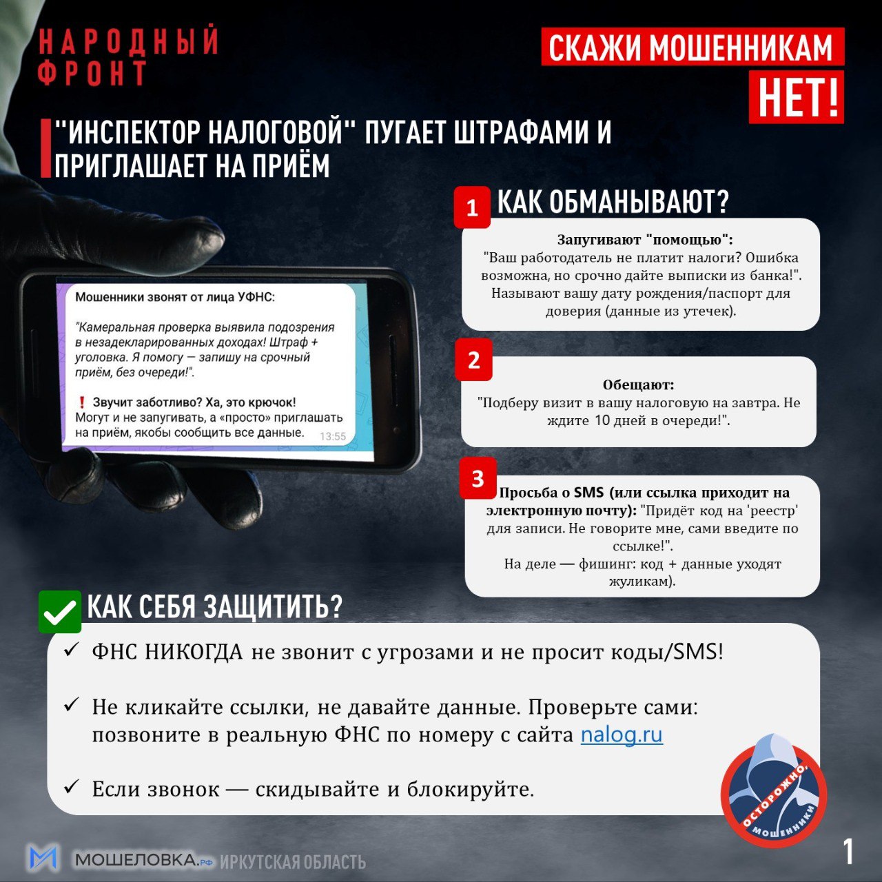 Якобы инспектор УФНС обзванивает людей и записывает на прием в ускоренном режиме, чтобы налогоплательщик мог быстро дать пояснения о доходах и избежать штрафов.