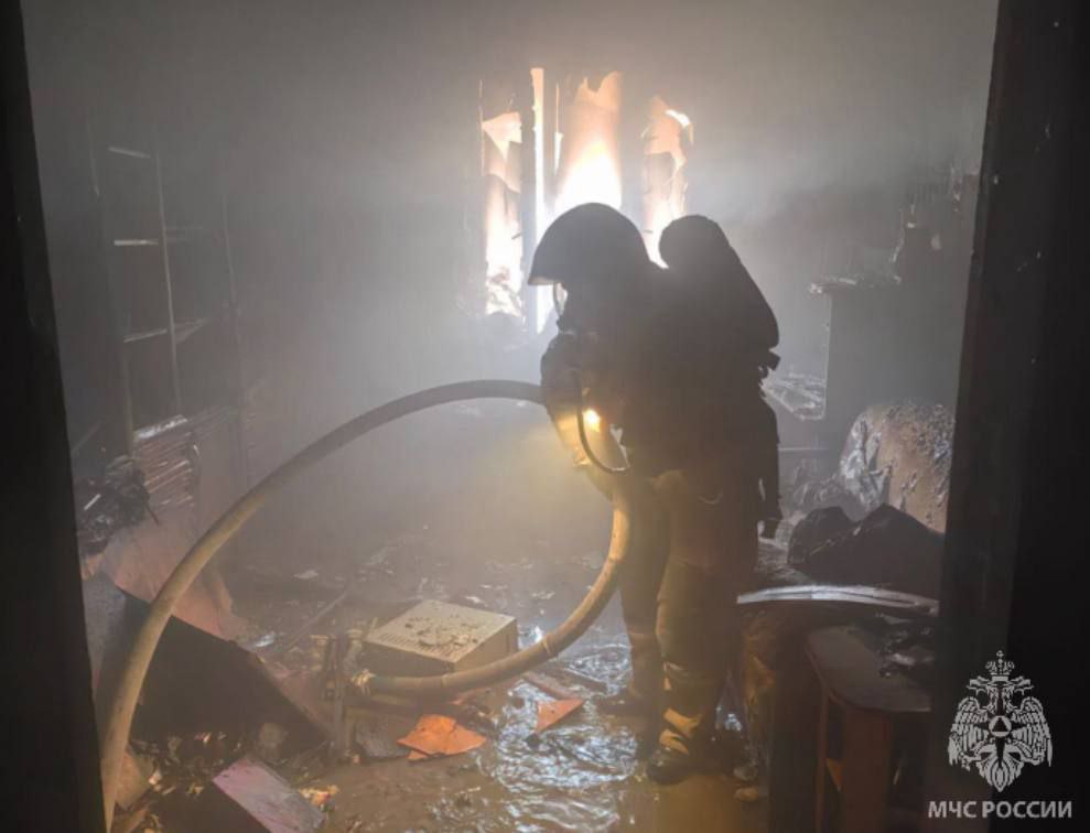 Сообщение о пожаре в одной из квартир на телефон диспетчера поступило сегодня в 11:31. В 107 квартал были направлены 12 пожарных МЧС России и 4 единицы техники.