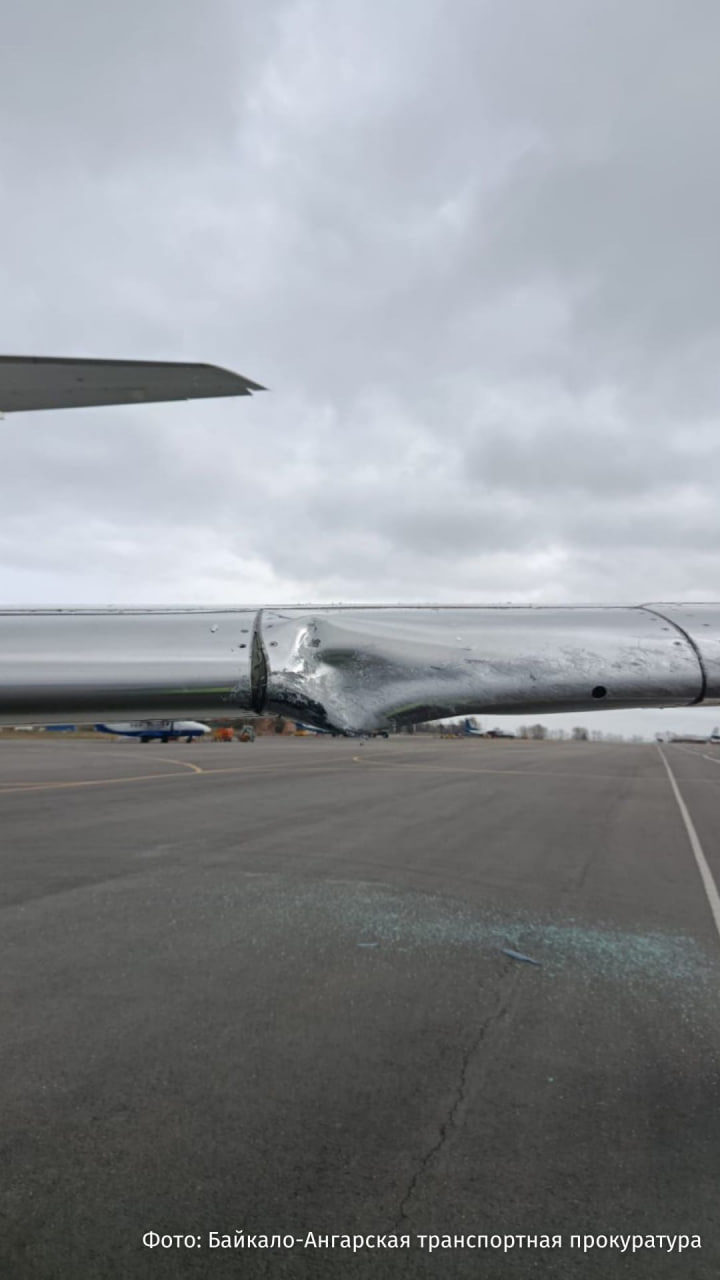 Самолёт турецкой авиакомпании Zafer air задел крылом микроавтобус в аэропорту Иркутска.