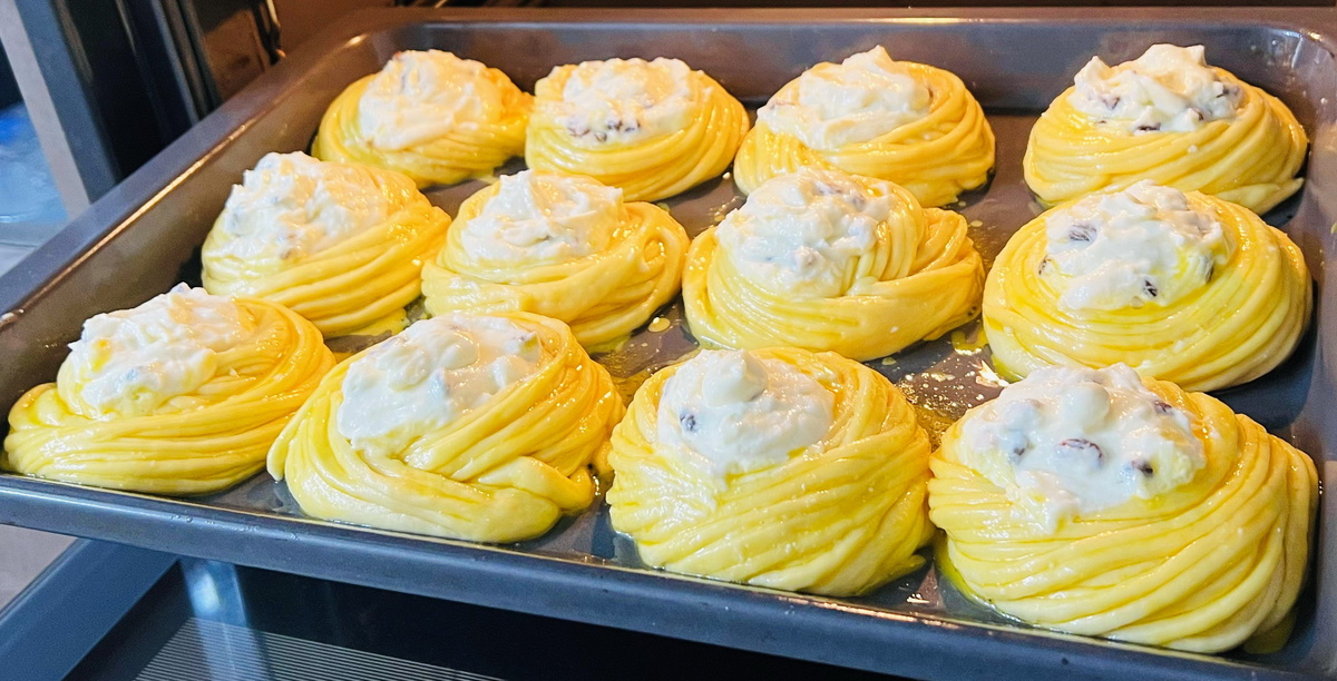 Заворачивая тесто в форму улитки и укладывая на противень, важно сделать небольшие углубления в центре, куда будет добавлена начинка. После этого булочки смазывают желтком и выпекают при температуре 180 градусов около 25 минут. Румяные и ароматные, они станут настоящим украшением вашего стола!