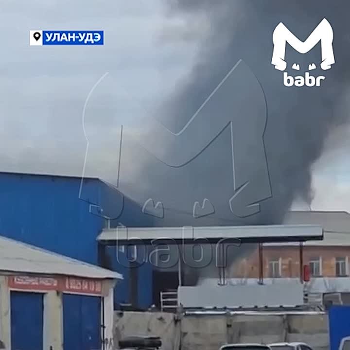Полыхает в районе "МегаДома", всю округу накрыло плотным чёрным дымом. На месте работают пять пожарных машин.