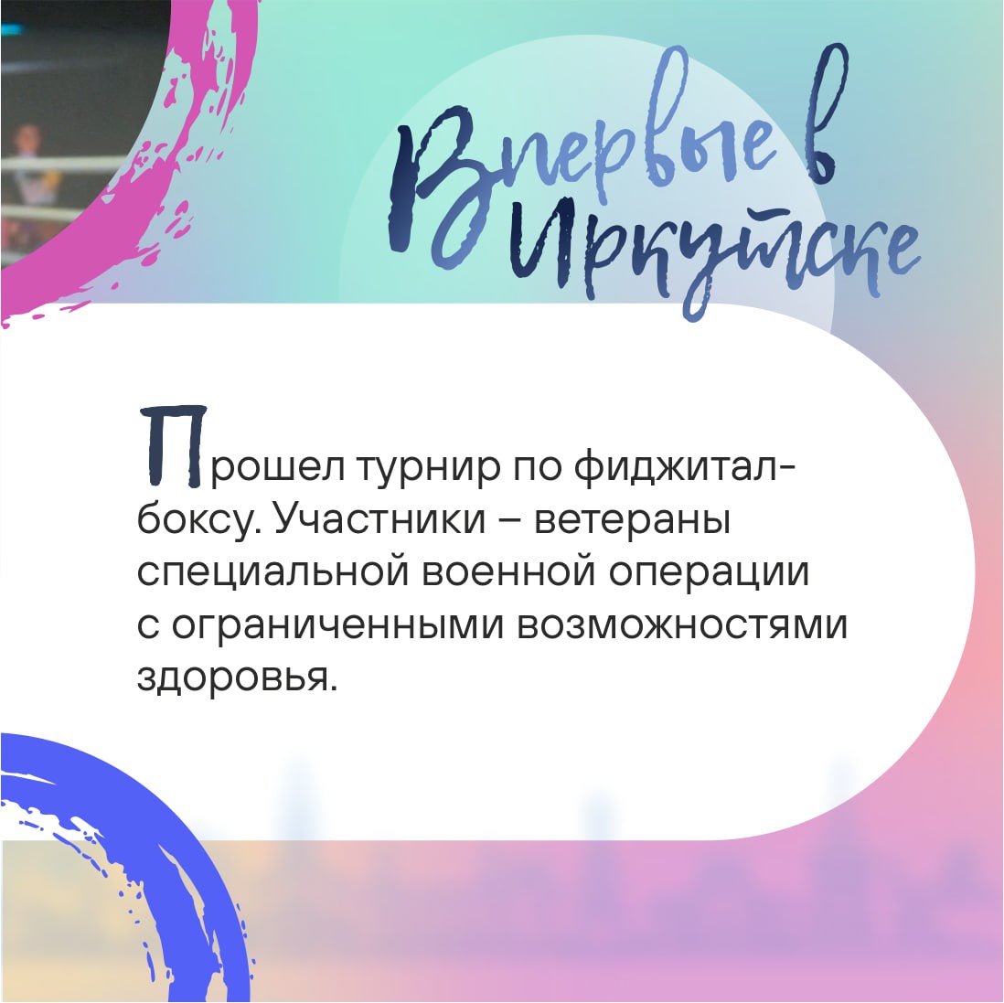 #Впервые_в_Иркутске – бокс без травм! Важное событие в развитии инклюзивного спорта в регионе состоялось на прошлой неделе. Что за мероприятие, где прошло и кто стал его участниками – смотрите в карточках.