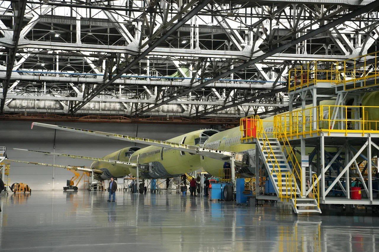 Сенаторы ознакомились с производственным циклом самолета МС-21, осмотрели линию агрегатной и окончательной сборки.
