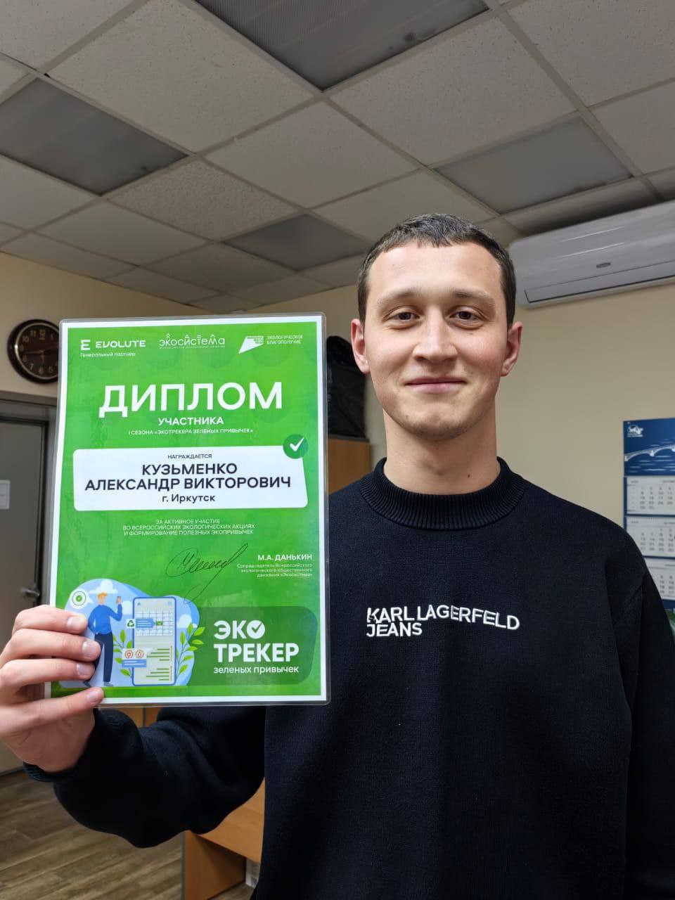 Иркутянин Александр Кузьменко стал одним из пяти победителей всероссийского проекта «Экотрекер зеленых привычек».