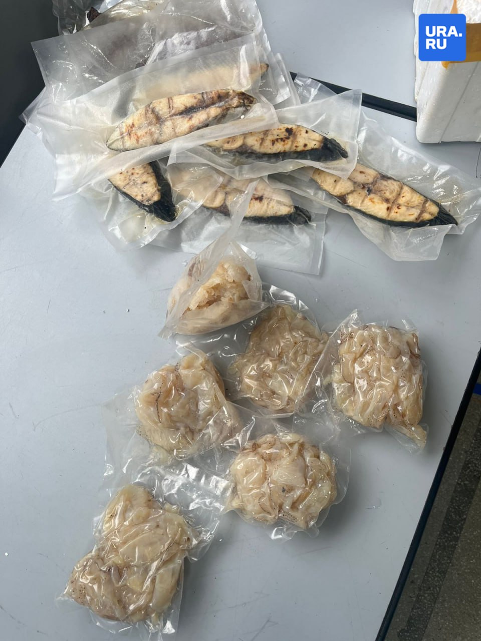 Помимо этого, в пенопластовом коробе нашли еще два килограмма морепродуктов, включая жареную рыбу. Проблема в том, что у пассажира не было необходимых документов и заводской упаковки.