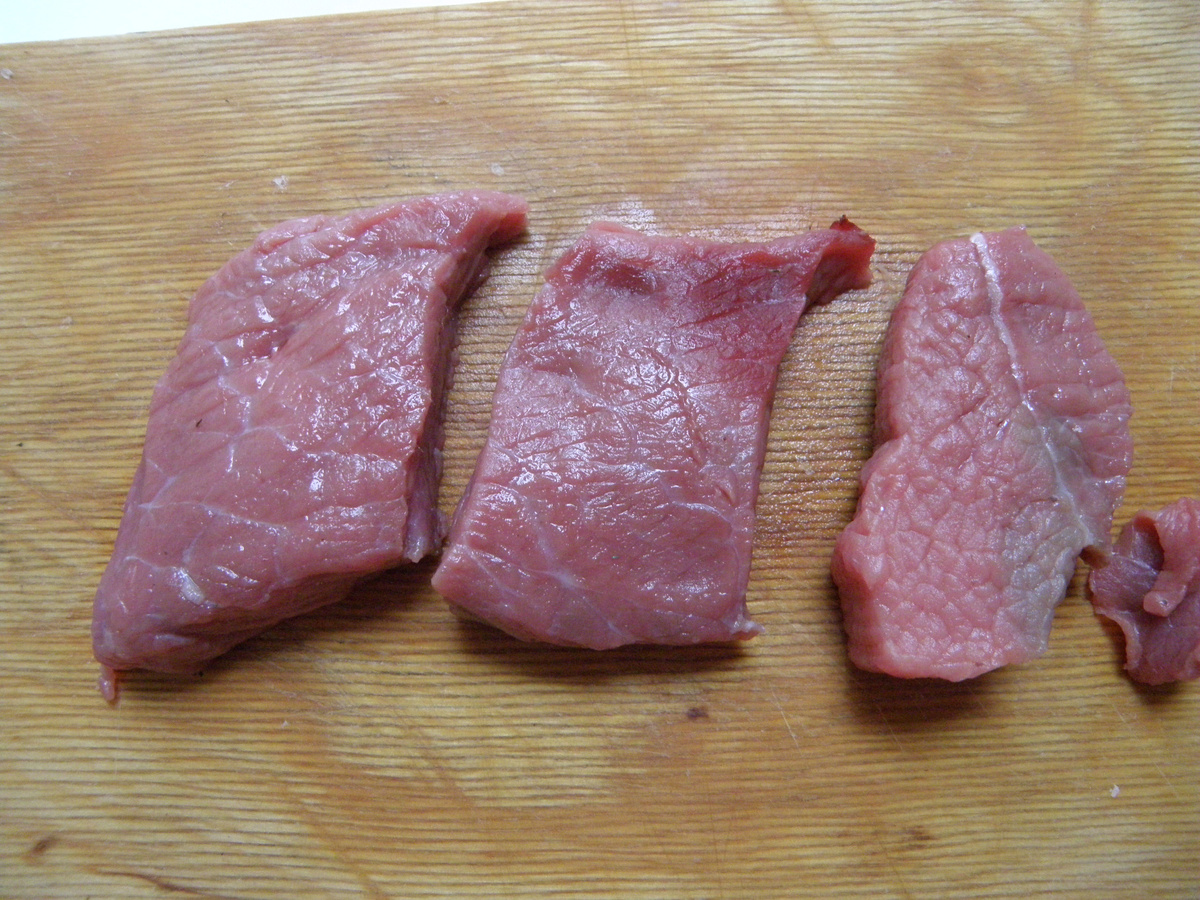 Процесс начинается с нарезки мяса на слайды требуемой толщины, обычно в 1-2 см. Затем кусочки мяса помещаются в пакет и аккуратно отбиваются. Это поможет сохранить текстуру и соки внутри. После — смесь соли и сахара придаст блюду необычное послевкусие.