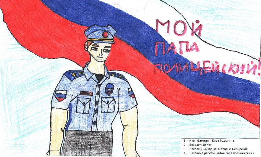 Новая работа в конкурсе детских рисунков «Мои родители работают в полиции Иркутской области - 2025»! Взгляните, что нарисовала Кира Родыгина из Усолья-Сибирского, 10 лет.