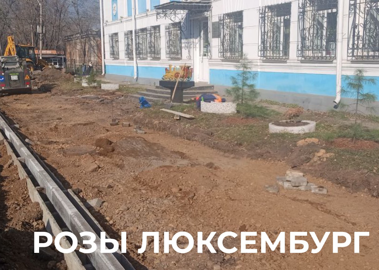 Розы Люксембург – установка бордюров, устройство основания и асфальтирование тротуаров;