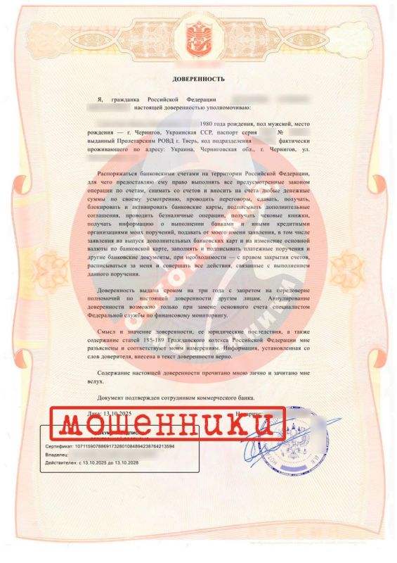 Как выяснилось в отделе полиции, с потерпевшей связался якобы менеджер доставки. Для получения "подарка" он попросил ее назвать код из СМС, а далее на ее телефон стали поступать звонки от псевдосотрудников силовых структур и финансовых организаций. Собеседники отправили фальшивую доверенность о распоряжении ее счетами и обвинили преподавателя в финансировании запрещенных организаций.