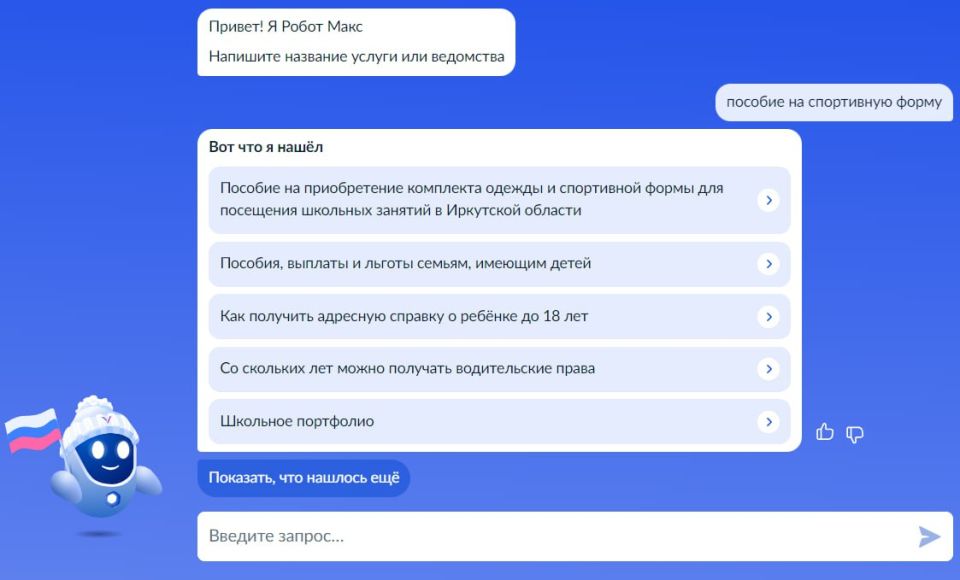 Министерство цифрового развития и связи Иркутской области научило ИИ-помощника портала Госуслуг робота Макса консультировать пользователей по региональным мерам поддержки в сфере социальной защиты населения.