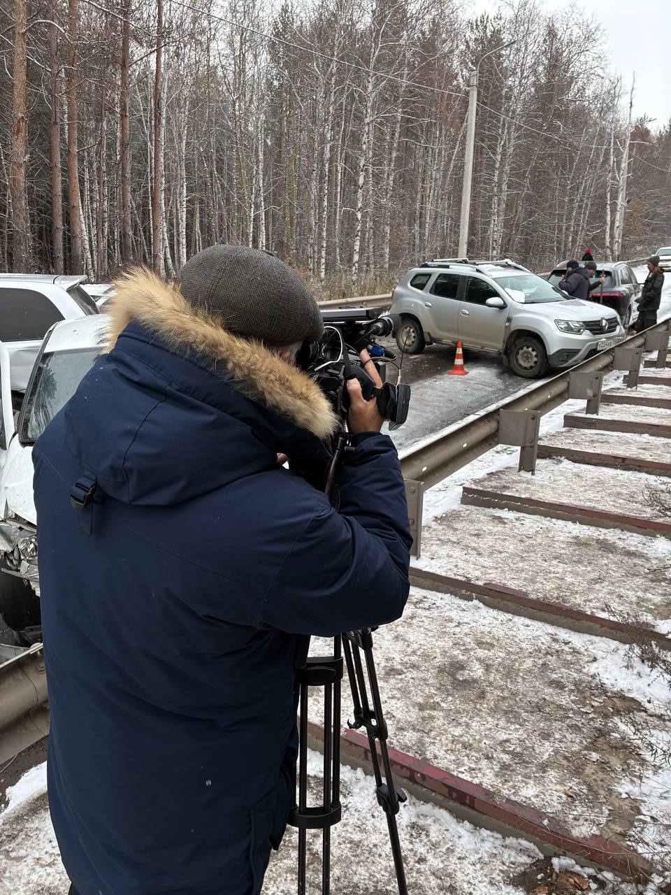 На месте работает наша съемочная группа. На дороге столкнулись не менее 8 автомобилей.