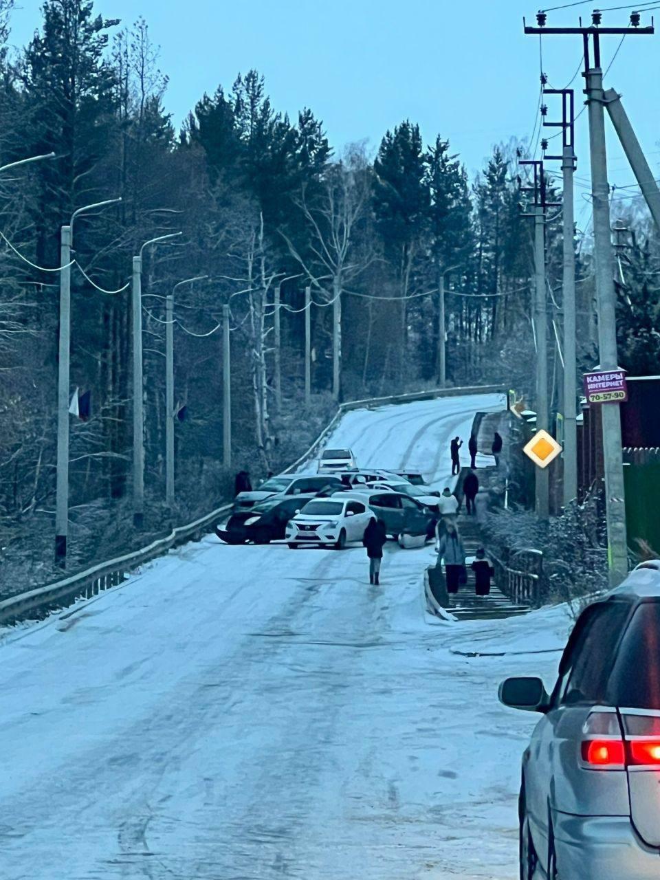 Восемь машин столкнулись из-за гололёда под Иркутском.