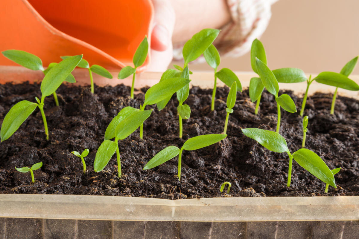 Спустя 10 дней после появления всходов можно проводить первую подкормку. Лучшим вариантом будут органические удобрения, которые быстрее усваиваются молодыми растениями. Например, паста «Биогумус» содержит много необходимых элементов и безопасные антибиотики, которые предотвращают развитие гнили и других заболеваний.