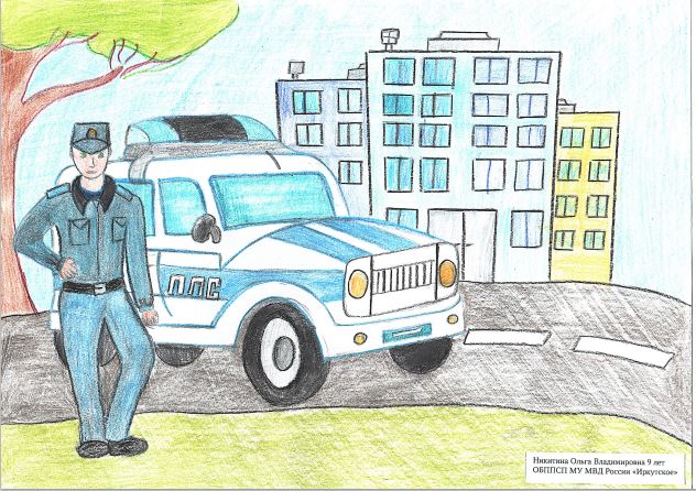 Новая работа в конкурсе детских рисунков «Мои родители работают в полиции Иркутской области - 2025»! Взгляните, что нарисовала Ольга Никитина из Иркутска, 9 лет.