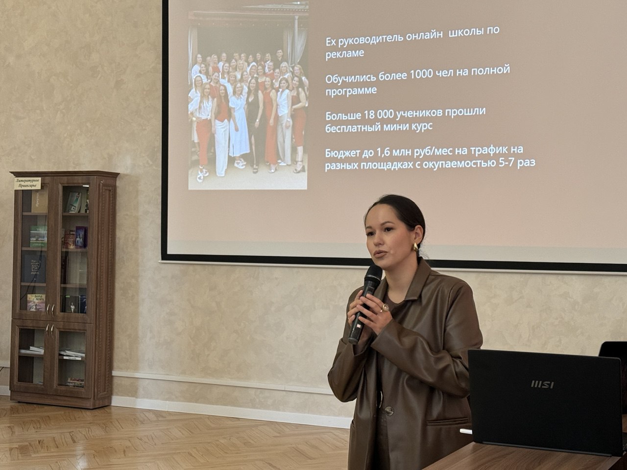 Спикером выступила иркутянка – Алёна Ковецкая. Она рассказала о механизме привлечения потребителей на различных платформах и социальных сетях, как захватить внимание потребителей и начать взаимодействие с ними. Разобрали практические кейсы и настроили личные кабинеты для рекламы.