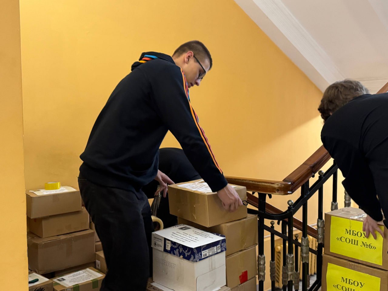 Посылки, собранные в школах Ангарского округа для земляков-участников спецоперации отправили из администрации накануне.