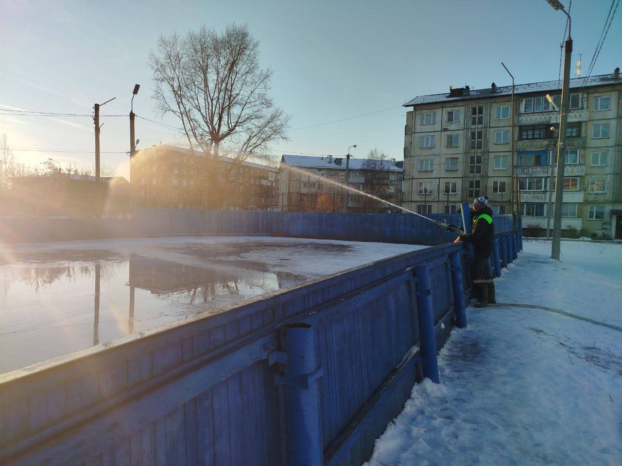 Зима официально близко: в Ново-ленино начали заливать катки