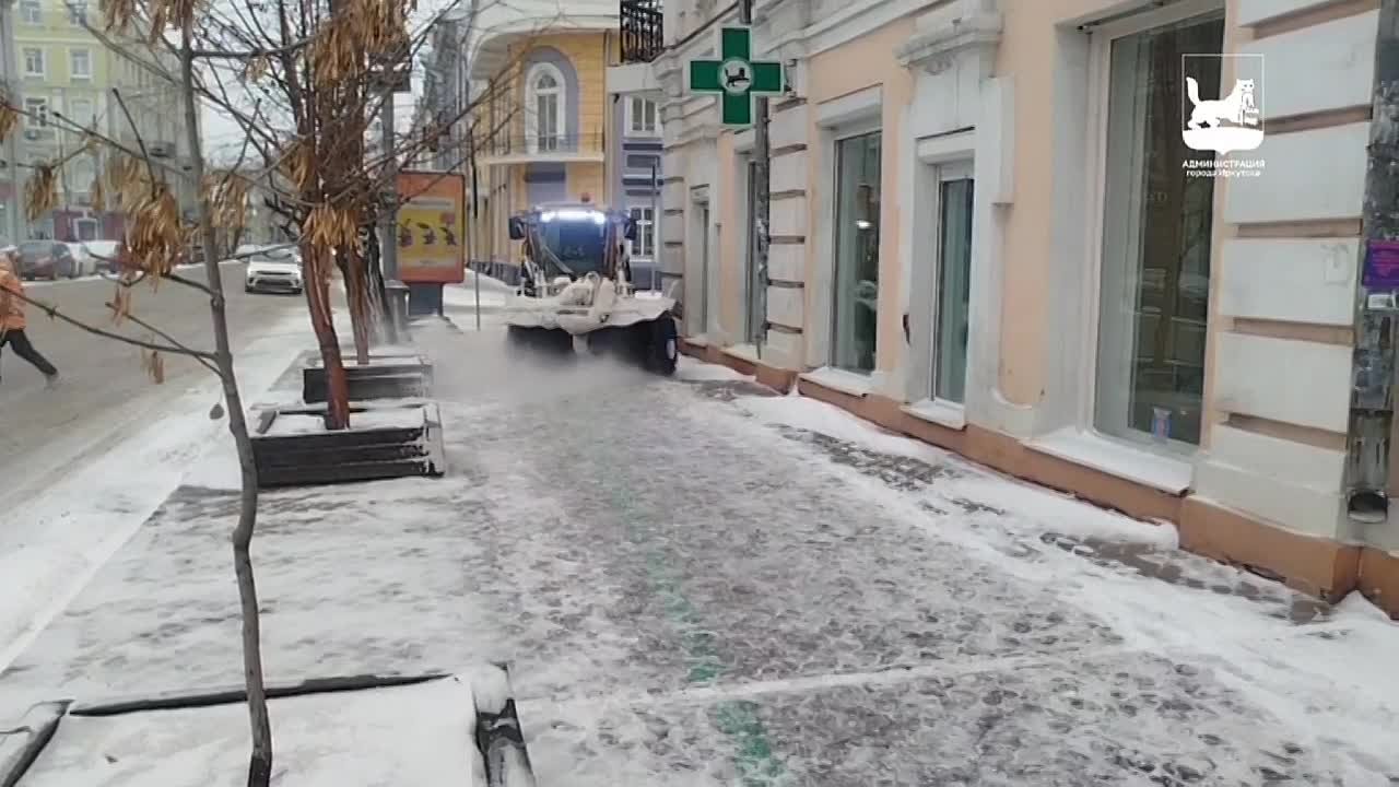 #Уборка_снега на тротуарах и дорогах города продолжается. Сотрудниками МУП «Иркутскавтодор» также проводится очистка пешеходных переходов и карманов остановок общественного транспорта.