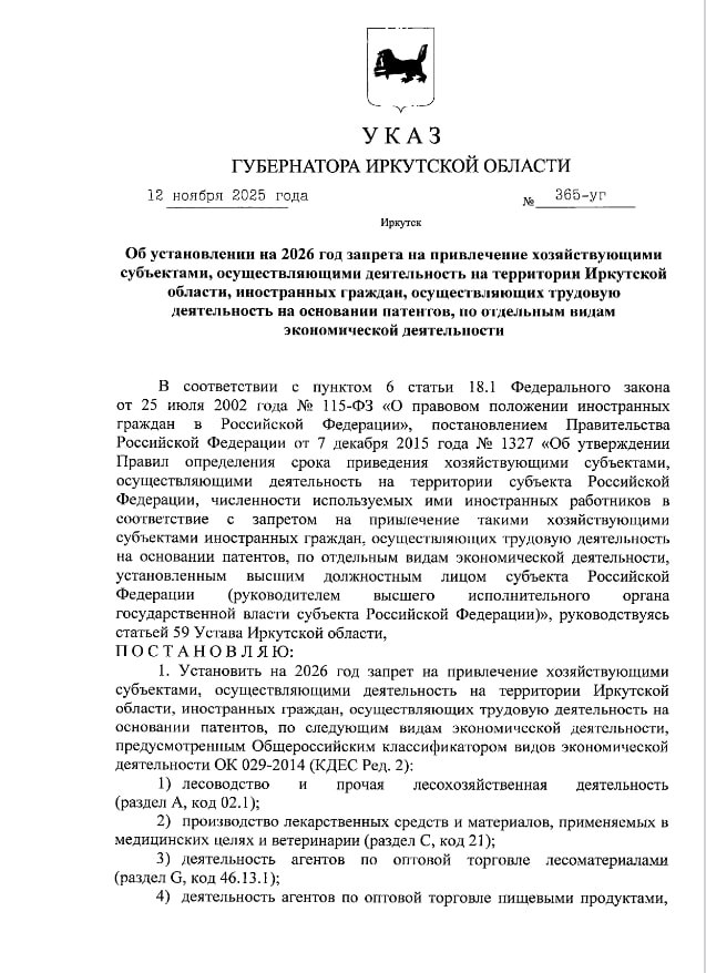 В Иркутской области запретят иностранцам работать в 16 сферах