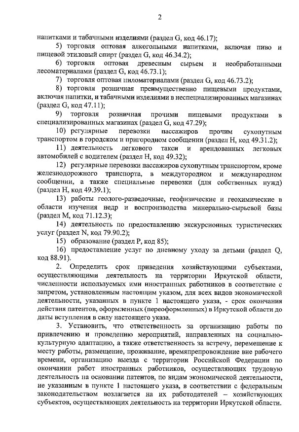 Указ касается иностранных граждан, осуществляющих трудовую деятельность на основании патентов по отдельным видам экономической деятельности.