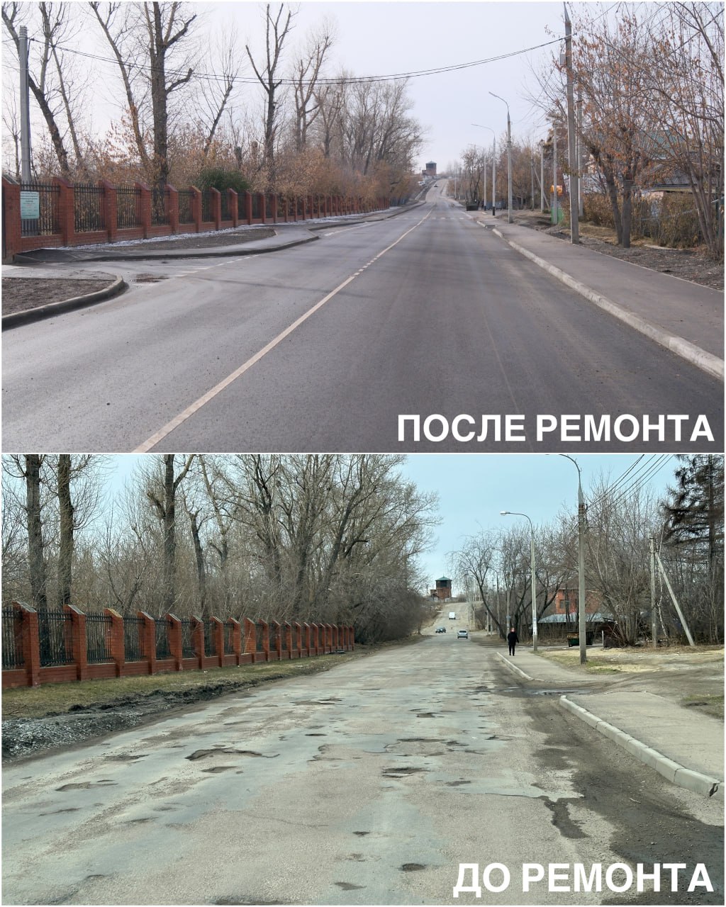 #итоги2025 На фото – улица Томсона до и после ремонта. В этом году по нацпроекту «Инфраструктура для жизни» провели комплексные работы на участке от улицы Розы Люксембург до объездной Ново-Ленино.