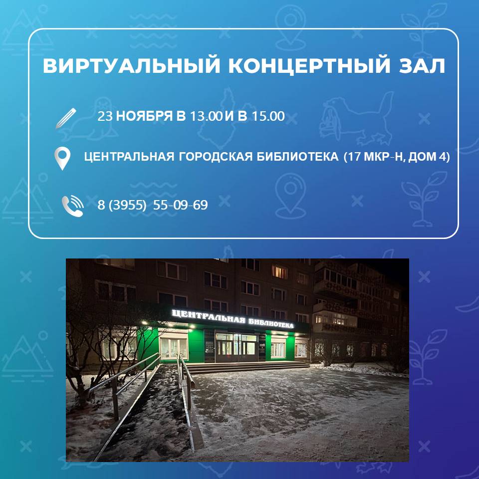 В виртуальном концертном зале Центральной городской библиотеки (17 микрорайон, дом 4) в это воскресенье, 23 ноября, можно насладиться отрывками сказки Шарля Перо «Спящая красавица» в рамках проекта «Сказки с оркестром». Читает актер Павел Любимцев. Начало в 13.00. А в 15.00 – покажут концерт Академического симфонического оркестра Московской филармонии. Справки по телефону 8(3955)55-09-69.