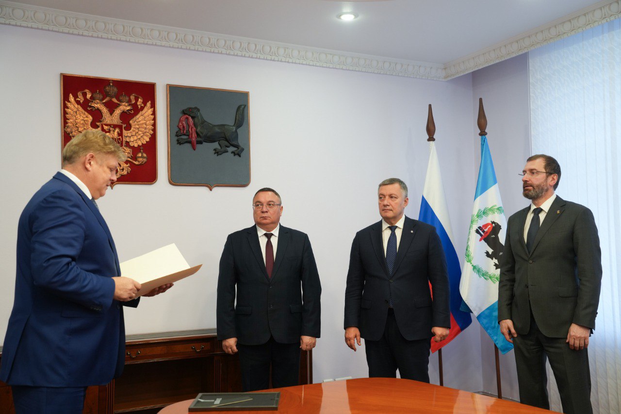 В Иркутске прошла рабочая встреча полномочного представителя Президента России в Сибирском федеральном округе Анатолия Серышева и Губернатора Иркутской области Игоря Кобзева с участием первого заместителя Председателя Правительства региона Андрея Соковикова и Председателя Законодательного Собрания Приангарья Александра Ведерникова.