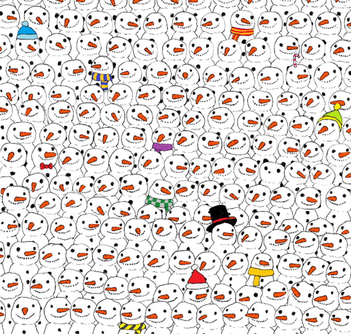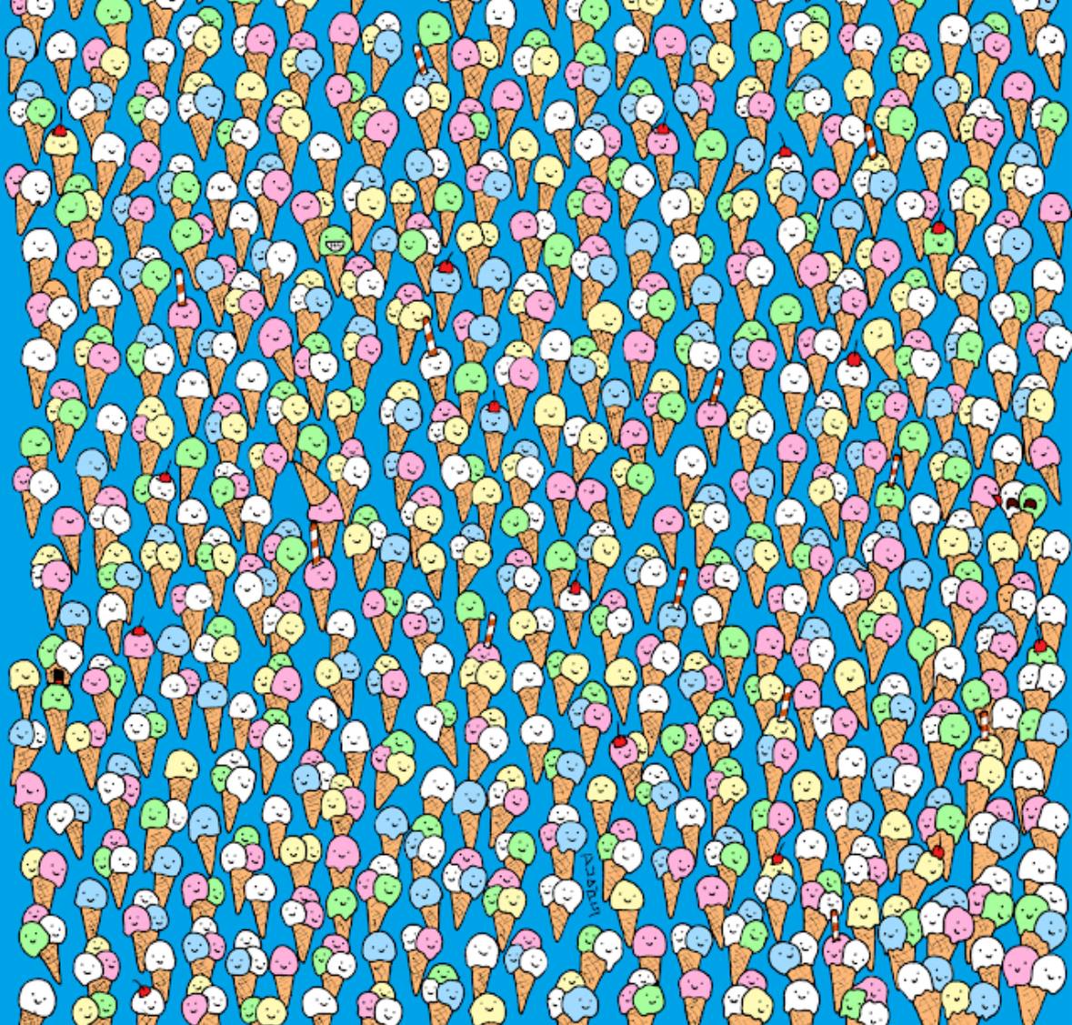 Задания вот такие:1На первой картинке найди сердечко среди слонов.2Теперь придется поискать панду среди снеговиков.3Третья головоломка - найдите леденец среди мороженого.