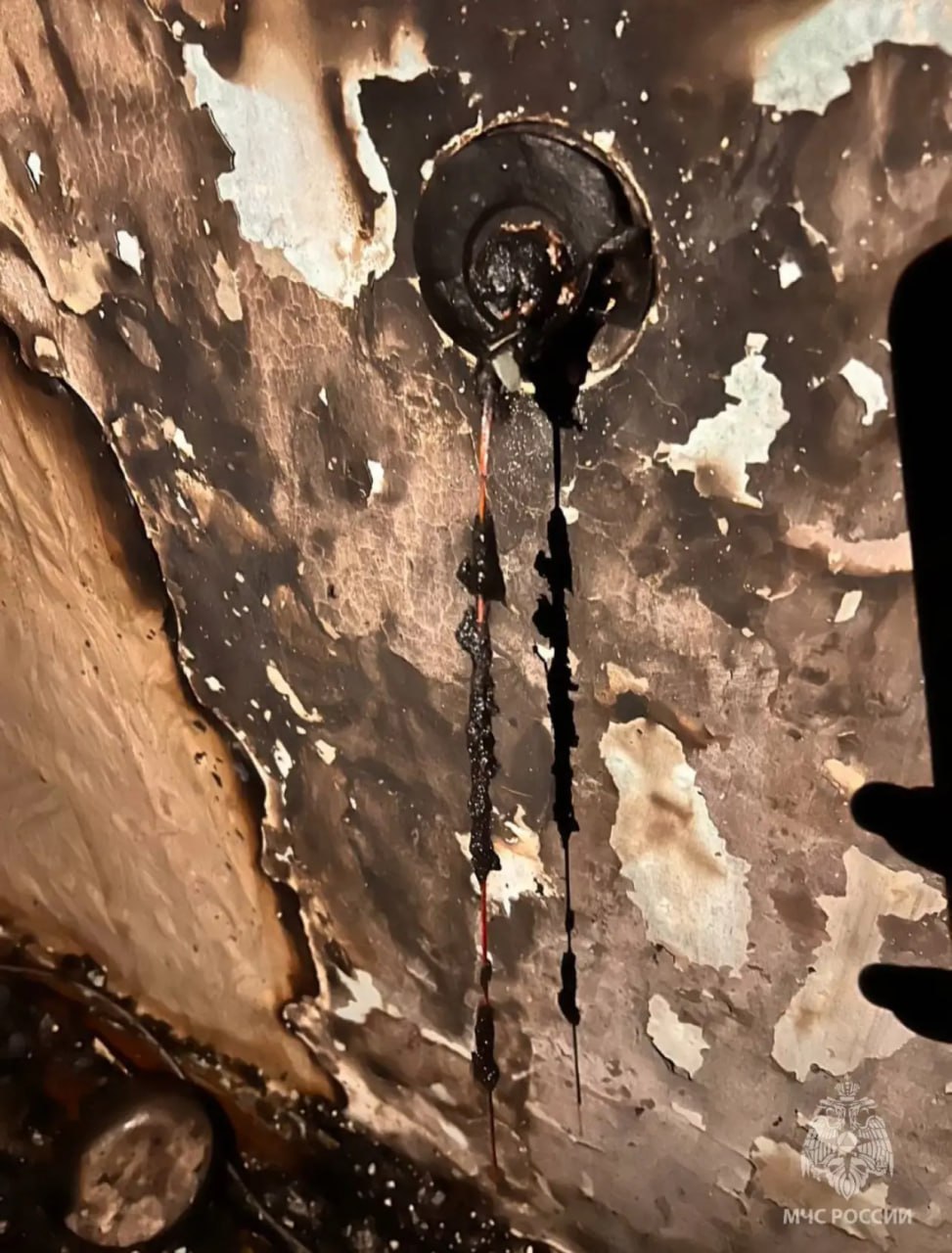 Как сообщают сотрудники МЧС, причина возгорания — короткое замыкание включенного в сеть зарядного устройства.