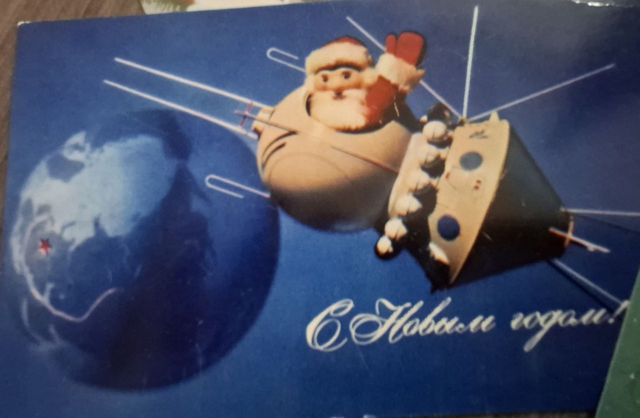 Вот Дед Мороз-космонавт -а это уже послание из будущего. Желание не просто «счастья», а счастья космических масштабов, прорыва, светлой утопии, которая вот-вот наступит.