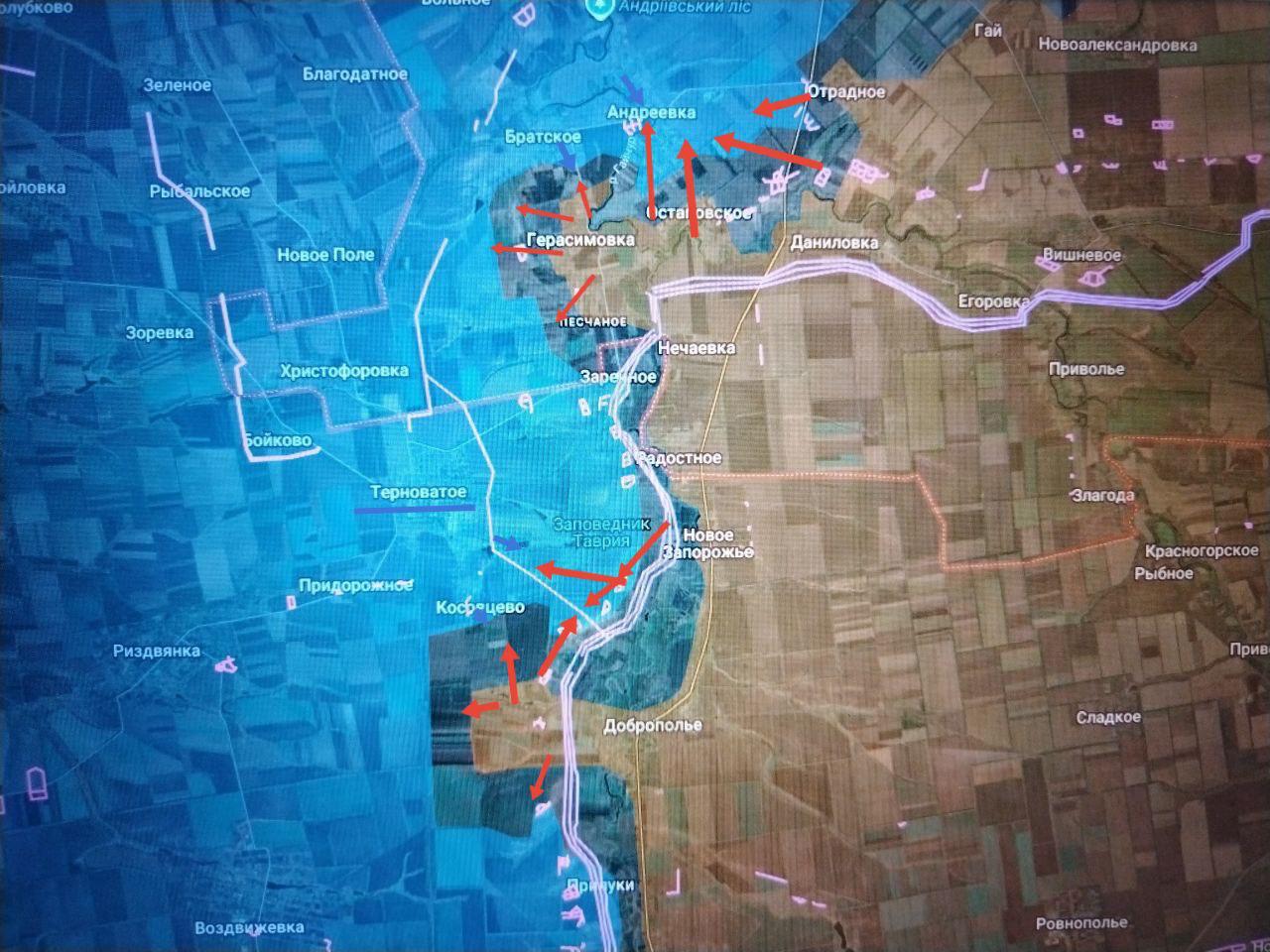 Продолжаются бои в Андреевке, где подразделения вышли к мосту, и на подступах к Братскому. Южнее восточной части Гуляйполя нанесён удар во фланг и тыл позициям противника севернее Дорожнянки.