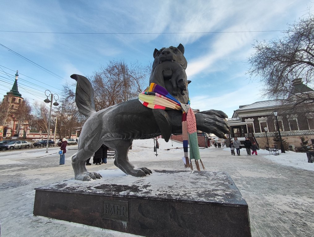 Чтобы бабр не замерз, иркутяне подарили ему огромный шарф!
